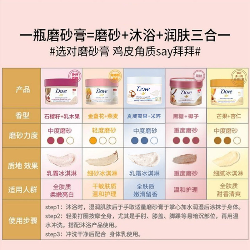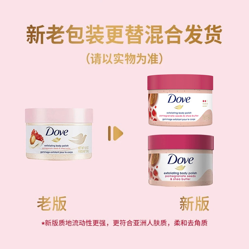 Dove多芬冰淇淋身体磨砂膏298g石榴籽&乳木果深层清洁去鸡皮角质