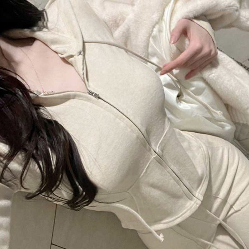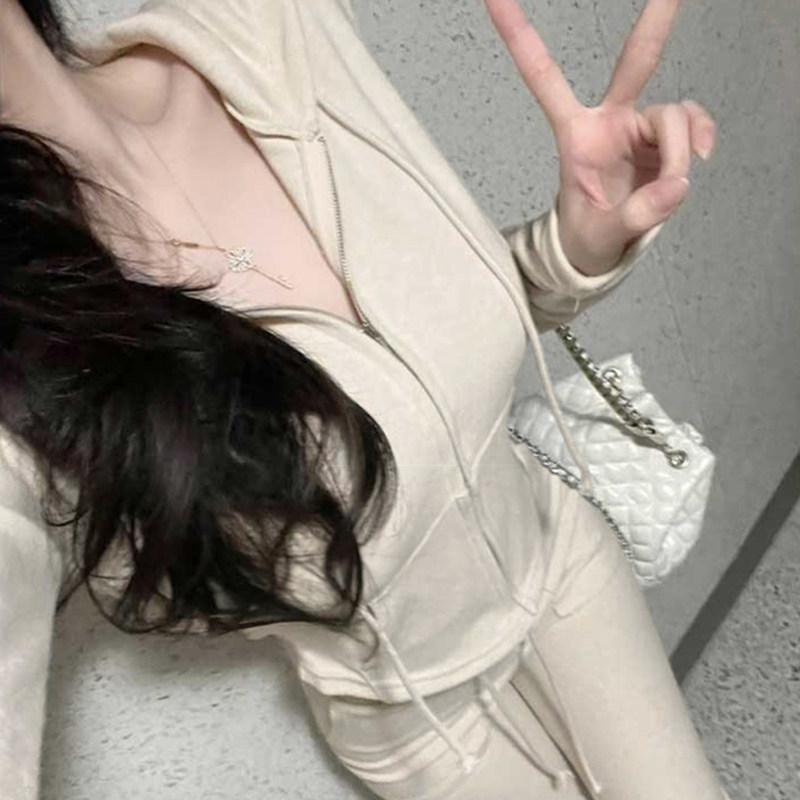 两件套装 休闲裤 女士 简约性感显身材气质连帽外套 纯欲风春秋新款