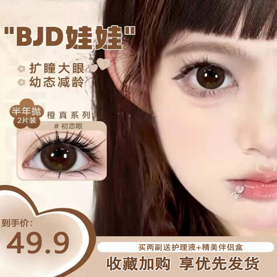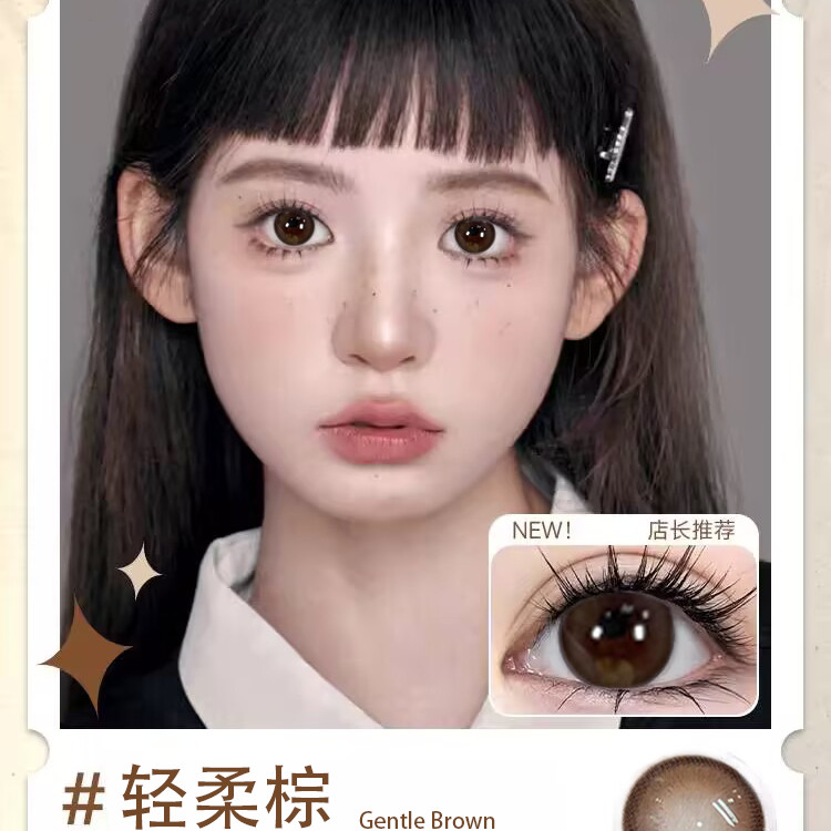 海昌棕色美瞳半年抛小直径14mm自然彩色近视隐形眼镜官方正品