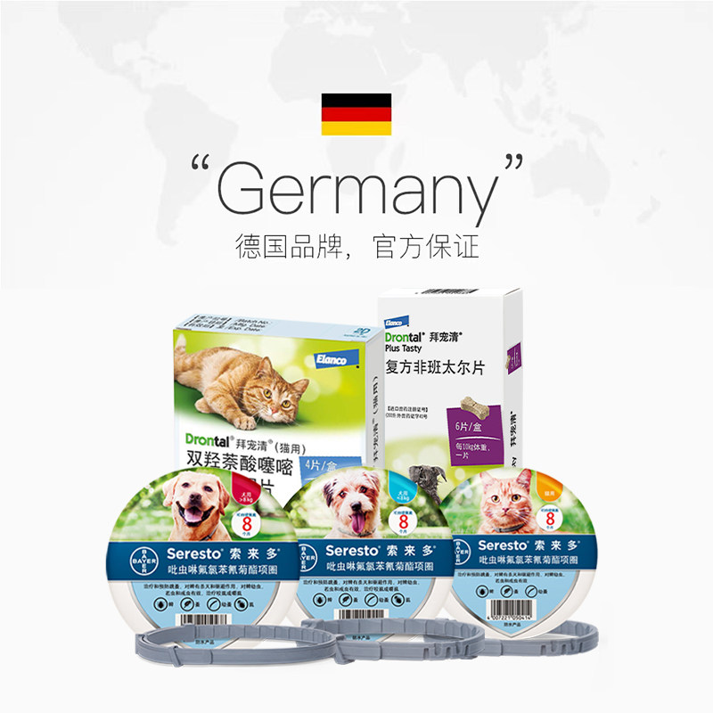 德国拜宠清索来多体内外驱虫药跳蚤蜱虫猫用犬用项圈 自营