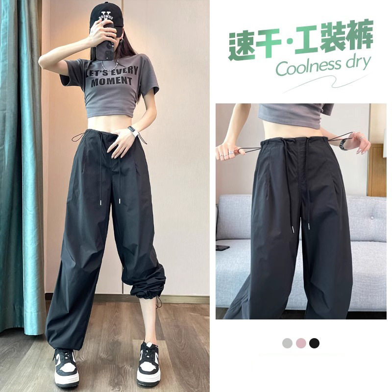 居家睡衣裤 高腰抽绳直筒阔腿裤 休闲运动 2025新款 冰丝速干裤