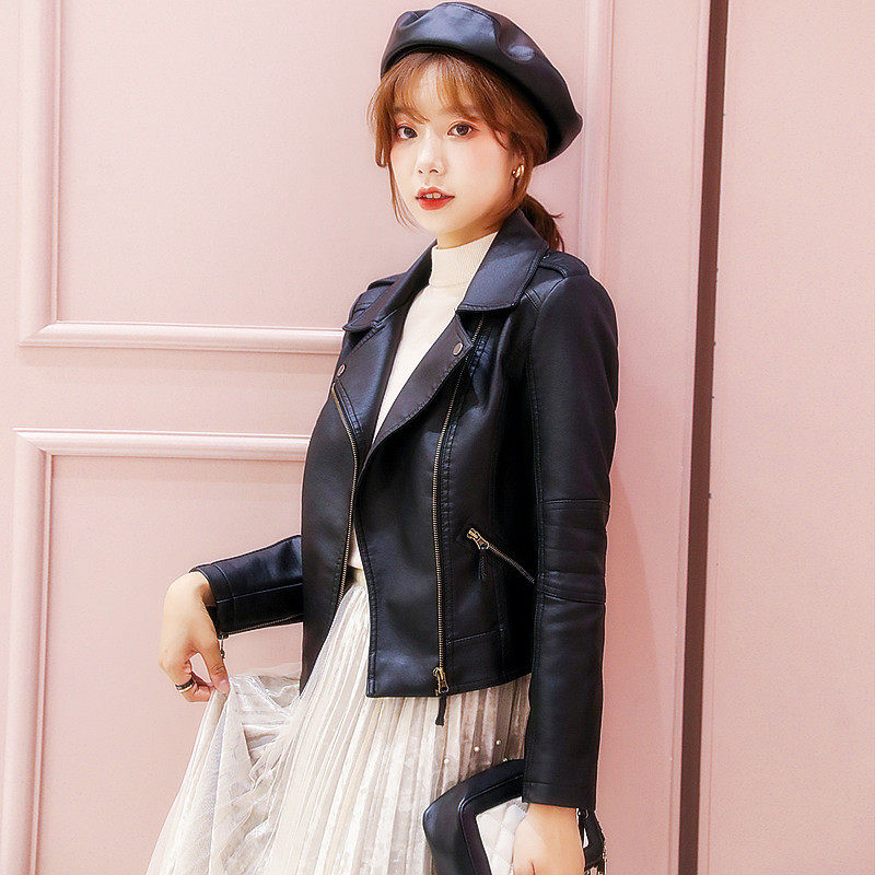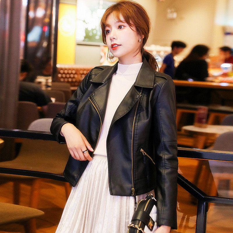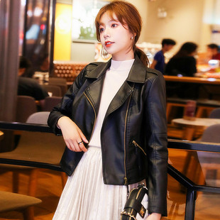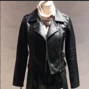 黑色美式 高级感气质宽松机车皮夹克皮衣 复古pu皮外套女春秋新款
