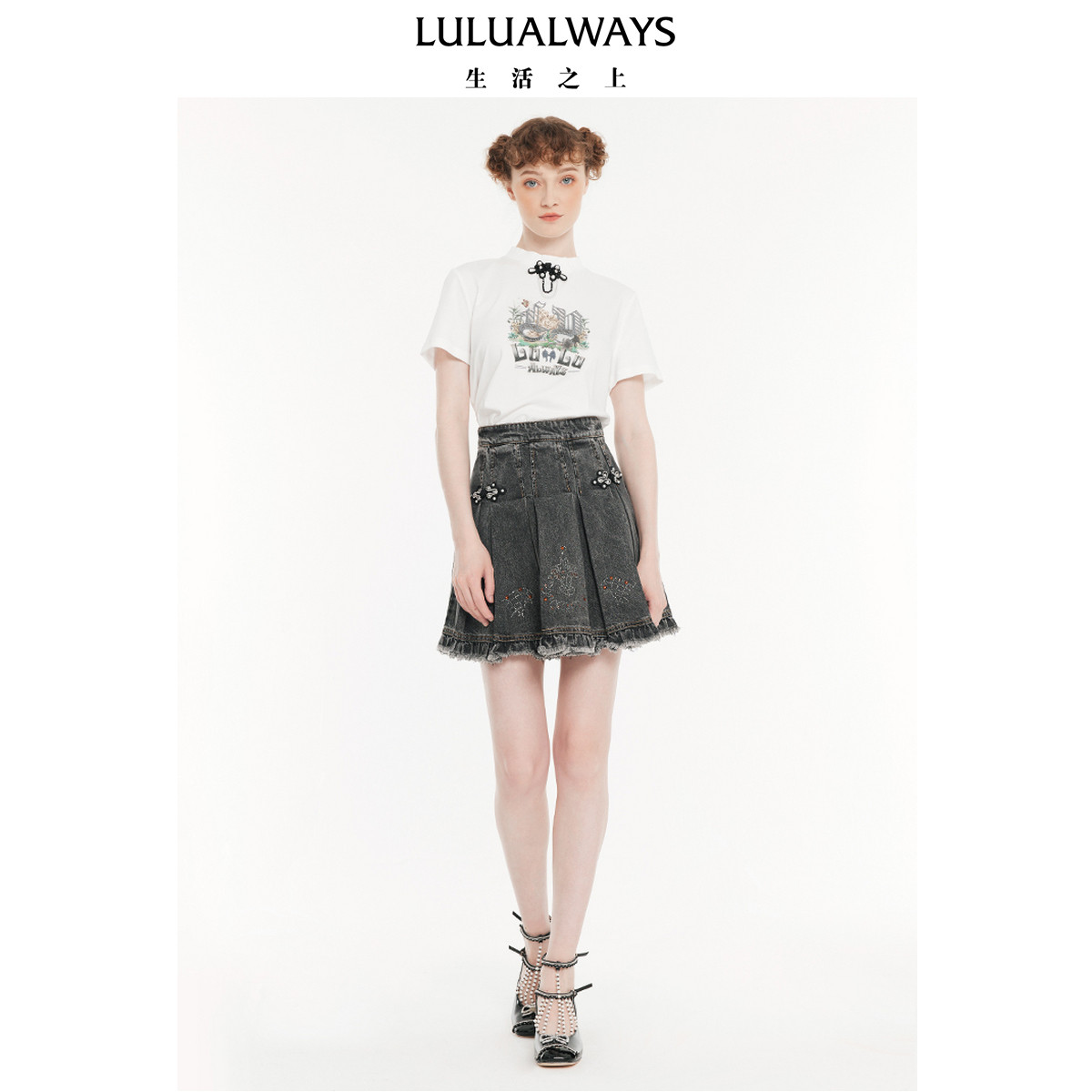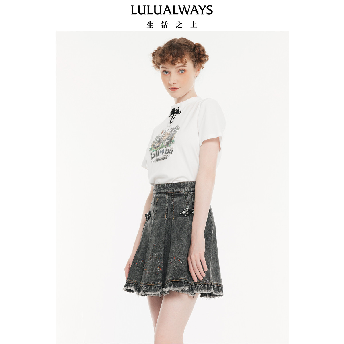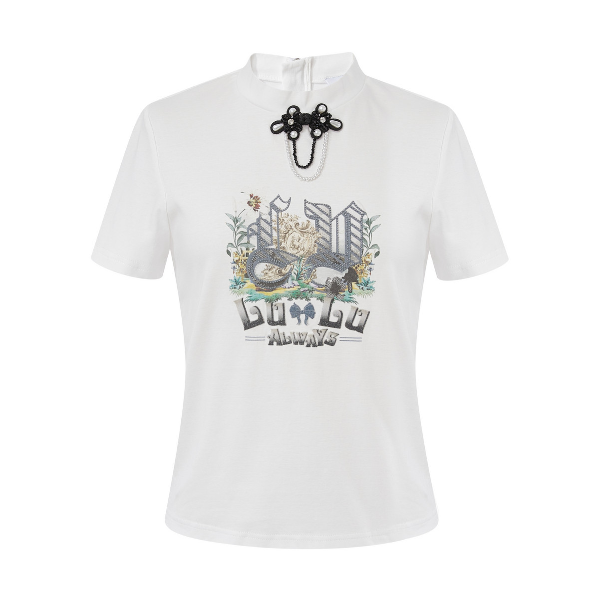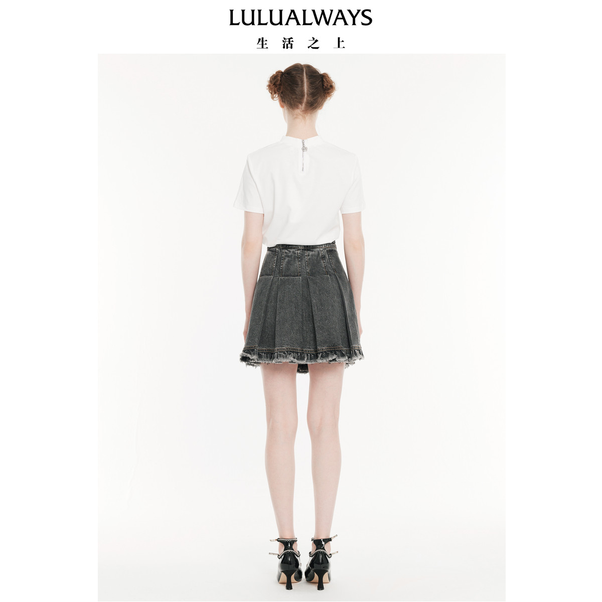 商场同款 T恤短袖 夏季 设计感盘扣白色短款 女 秋款 LULUALWAYS