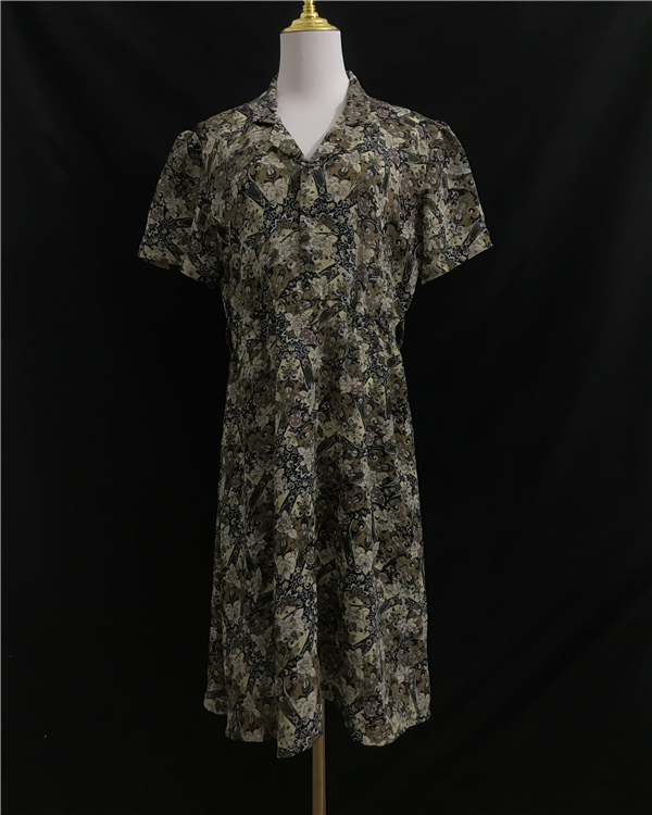 vintage古着夏季 雪纺碎花复古学院小清新收腰显瘦连衣裙Q159 薄款