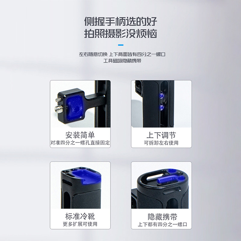 颜左 4阿莱定位兔笼侧手柄手机兔笼配件侧面手柄木纹硅胶迷你手柄 YANZUO适用于铁头颜左相机兔笼1