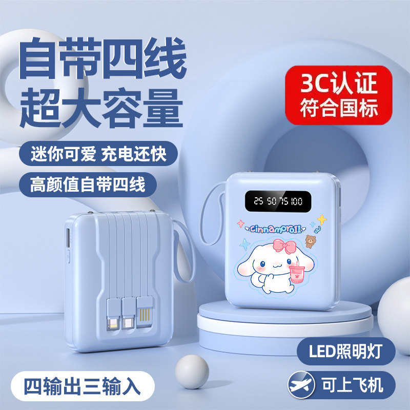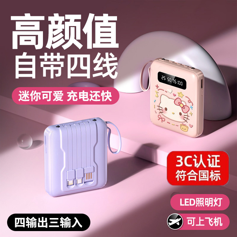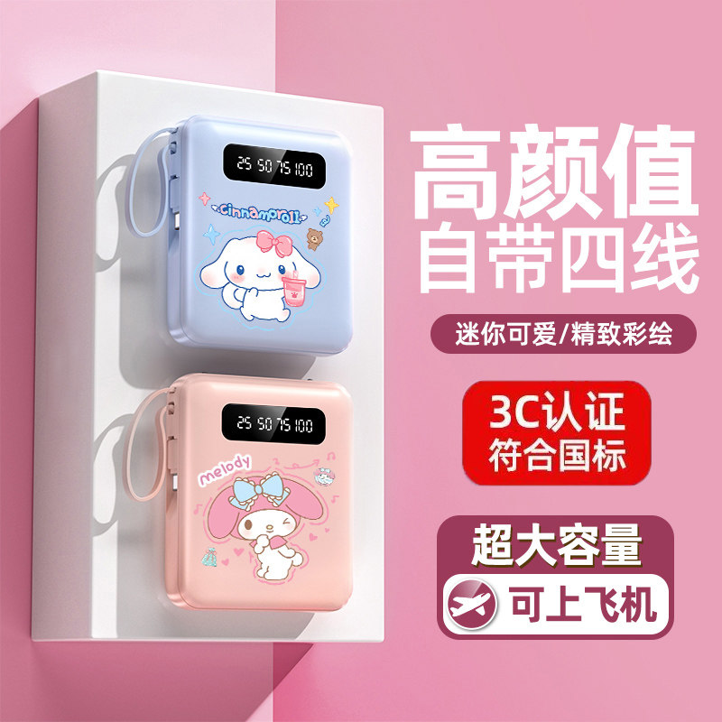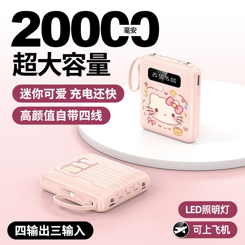 正品 快充自带线充电宝20000毫安超大容量超薄小巧便携迷你移动电源适用华为vivoppo苹果专用可爱1万可上飞机