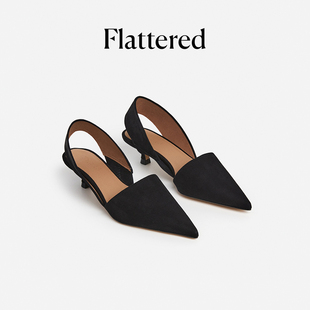 新品 Ninni女士绒面羊皮小猫跟尖头包头凉鞋 Flattered 和慌慌同款