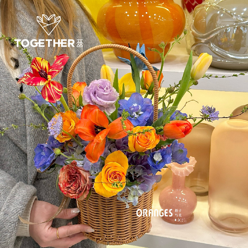 田园手提花篮 法式 苁丛 藤编花篮草编抱抱篮