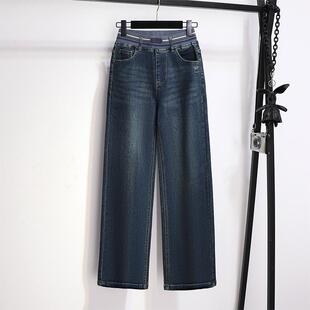 显瘦直筒长裤 女春秋2026年新宽松款 阔腿牛仔裤 复古蓝色松紧腰窄版