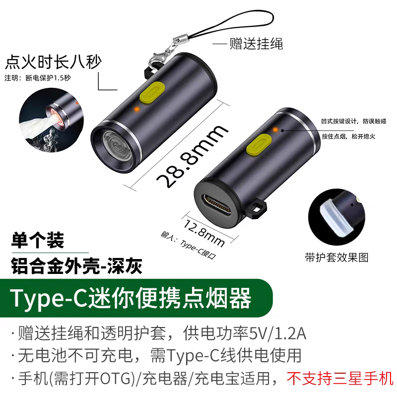 TypeC便携式 C电源 点火器迷你转换头电子打火机车载点烟器户外USB