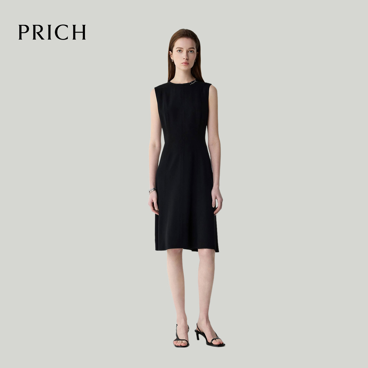 收腰圆领无袖 PRICH简约干练连衣裙夏季 裙子女 醋酸