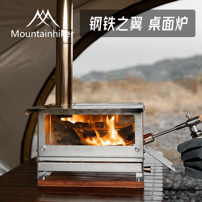 野孩子户外露营野炊取暖钢铁之翼桌面柴火炉便携式 不锈钢帐篷炉子
