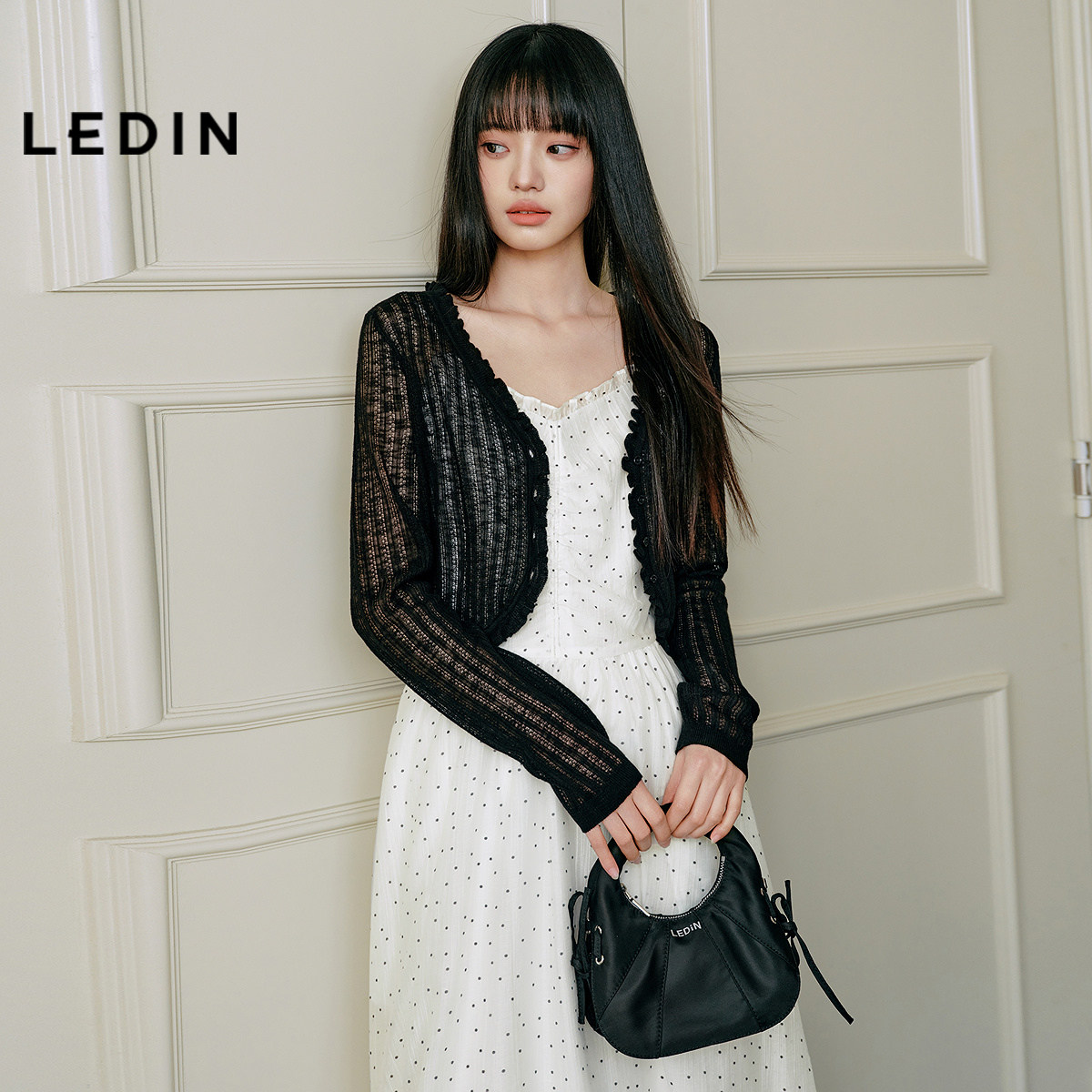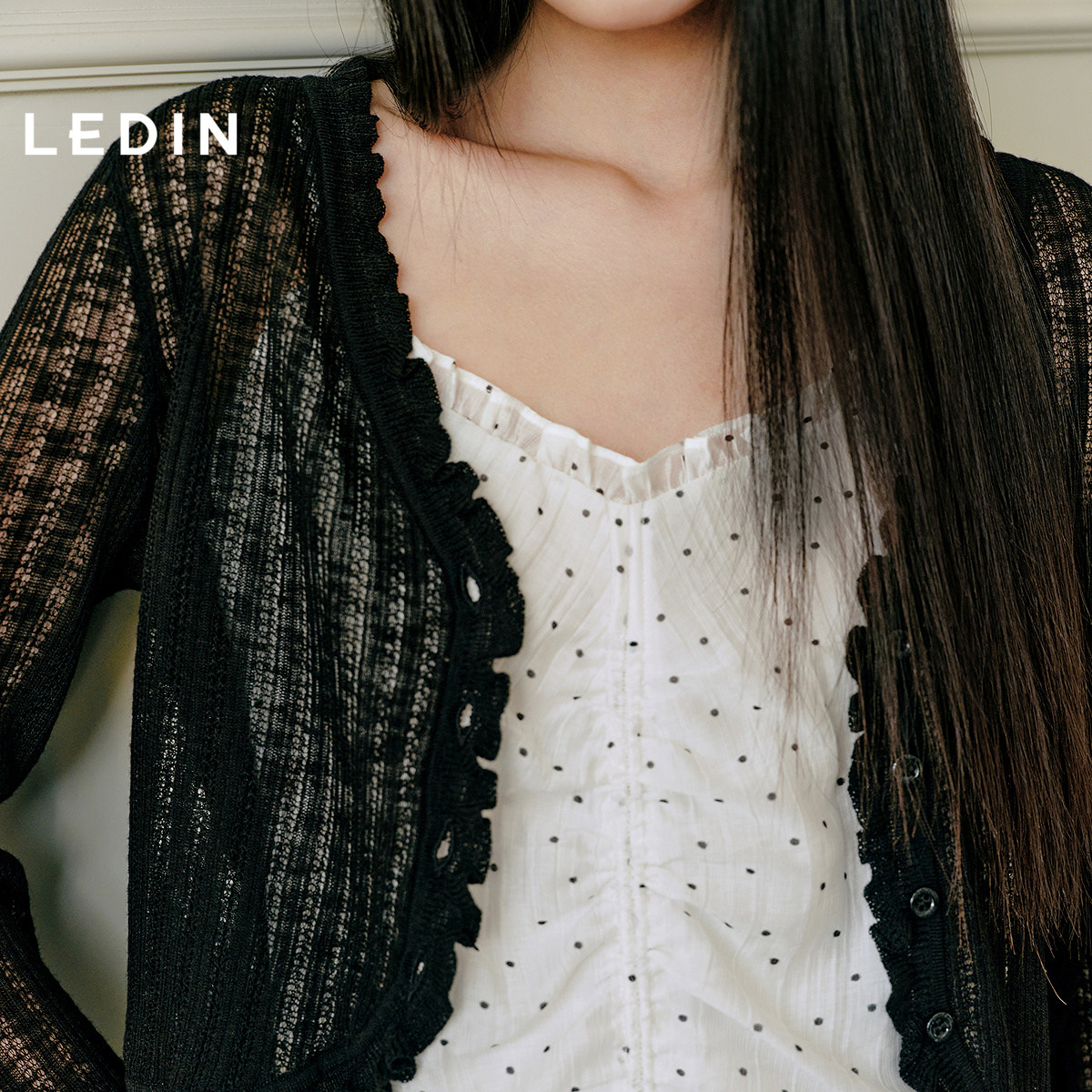 商场同款 针织罩衫 乐町木耳边简约线开衫 长袖 C1EDF2128 夏新款