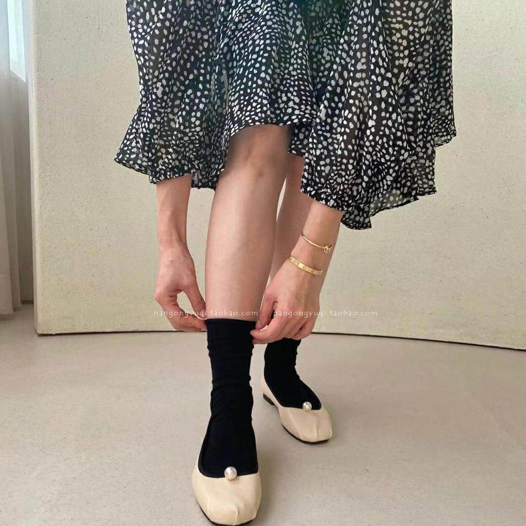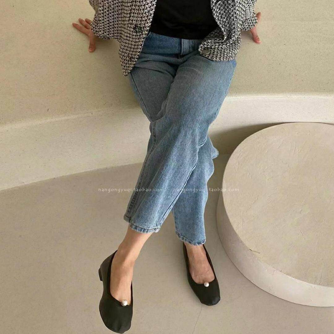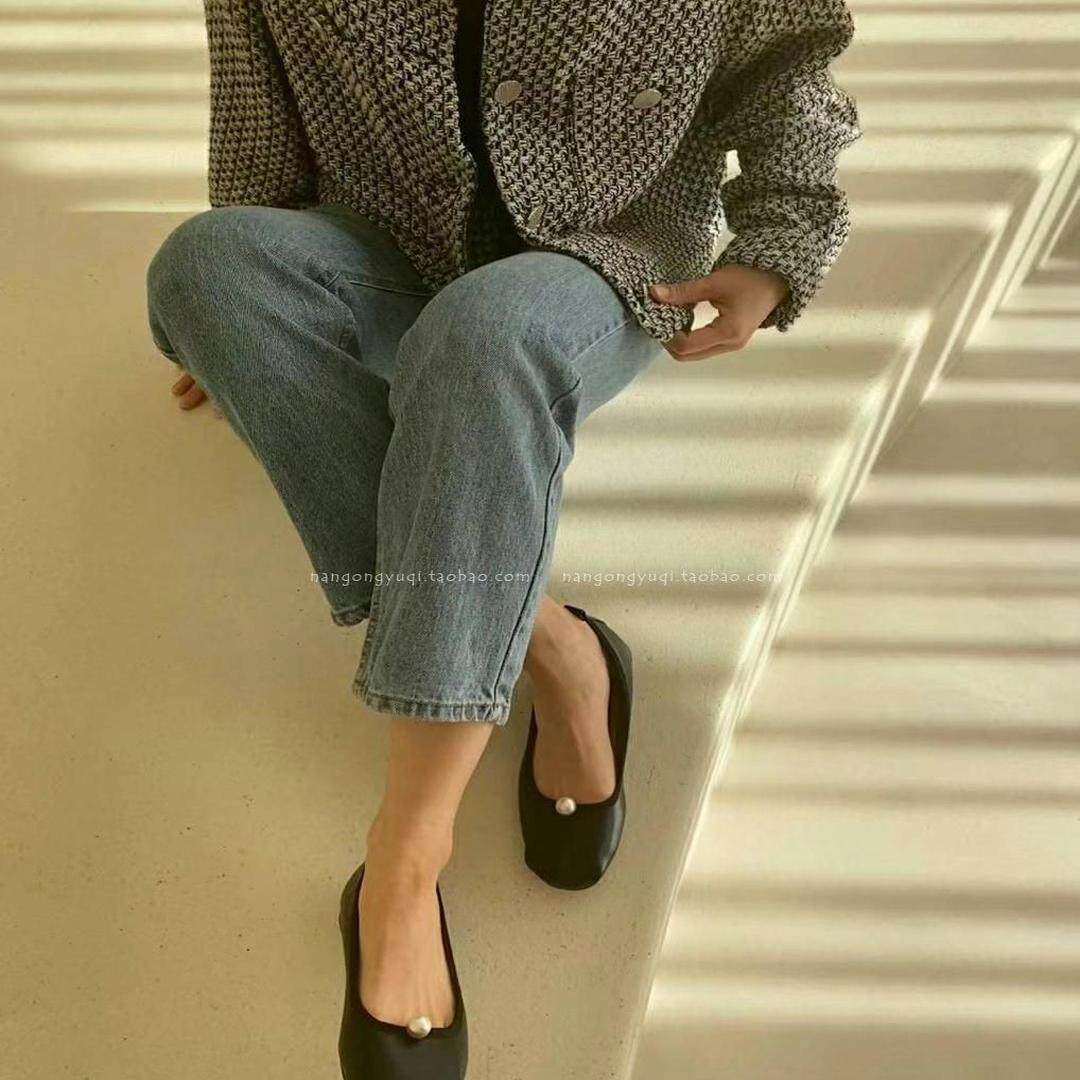 chic简约复古珍珠圆头浅口平底小飘鞋 韩国东大门女鞋 2025早春新款