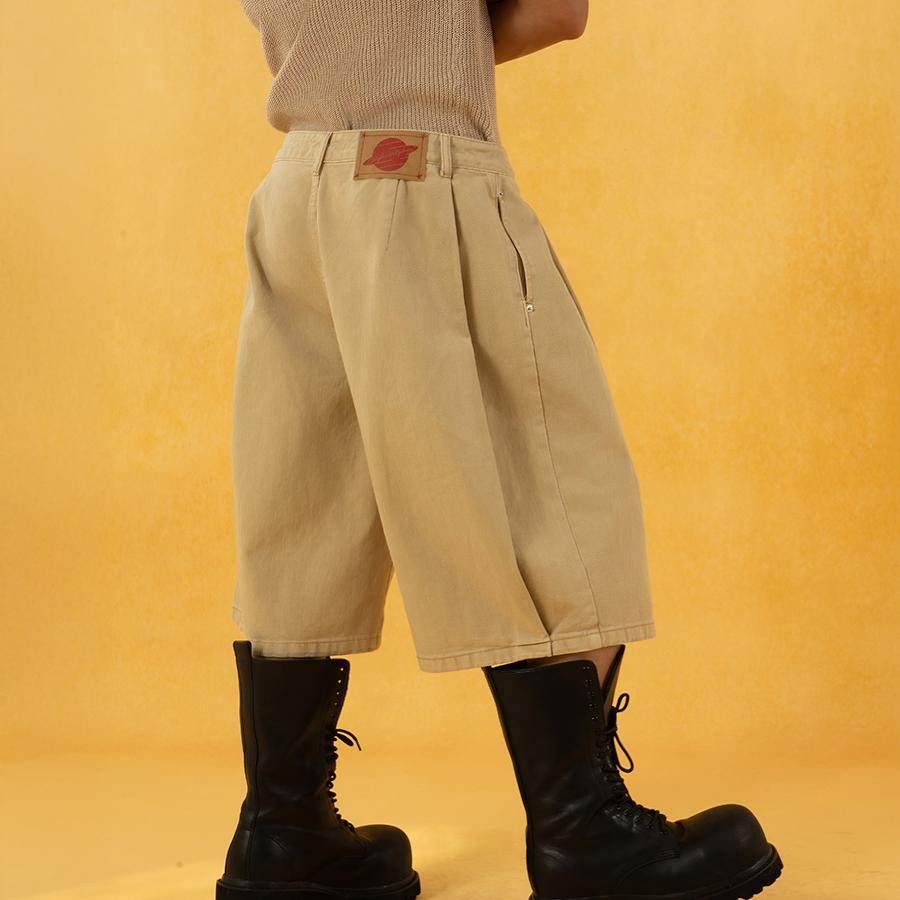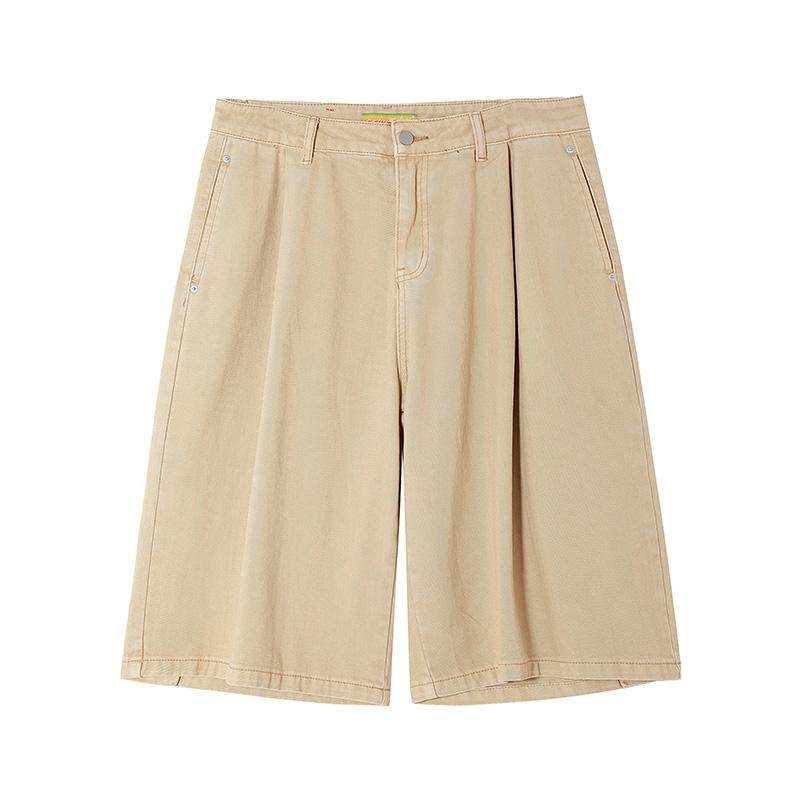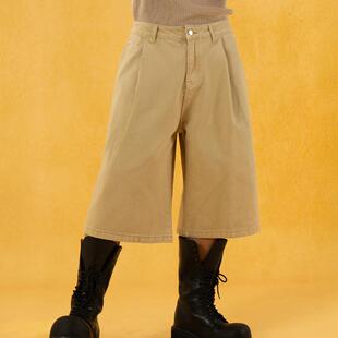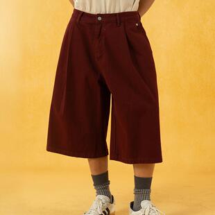 中裤 男宽松阔腿直筒弯刀马裤 复古 休闲裤 CLP红卡其色七分过膝短裤