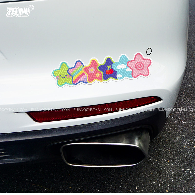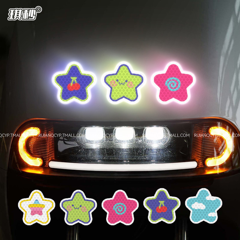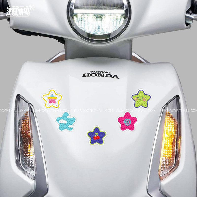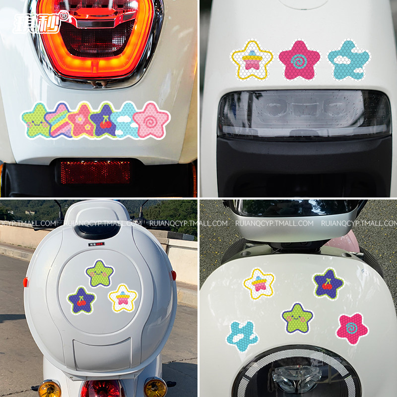 彩色星星电动车夜间反光警示贴摩托汽车贴纸头盔自行车身装 饰防水