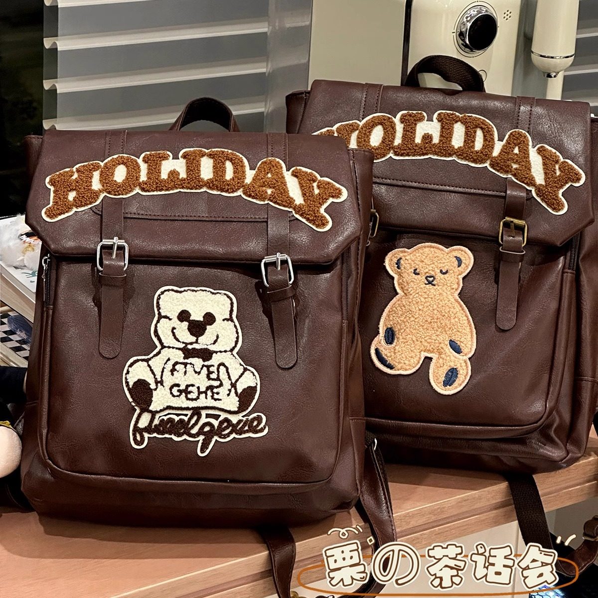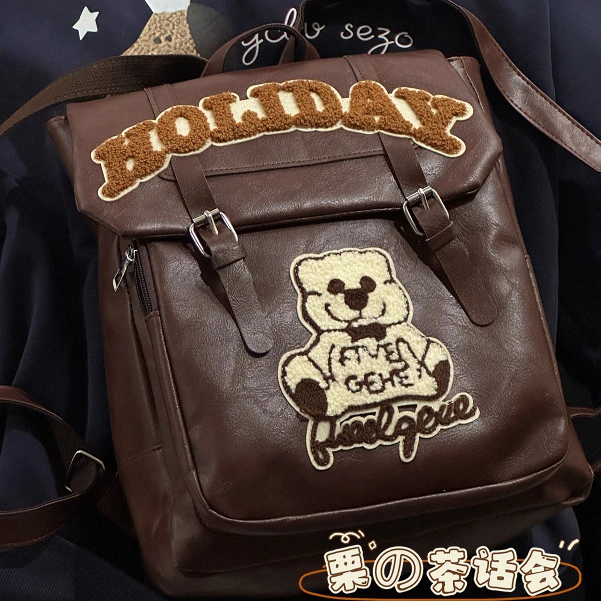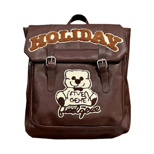 美式 可爱Y2K甜辣妹休闲旅游背包大学生上课双肩包 复古PU皮书包女