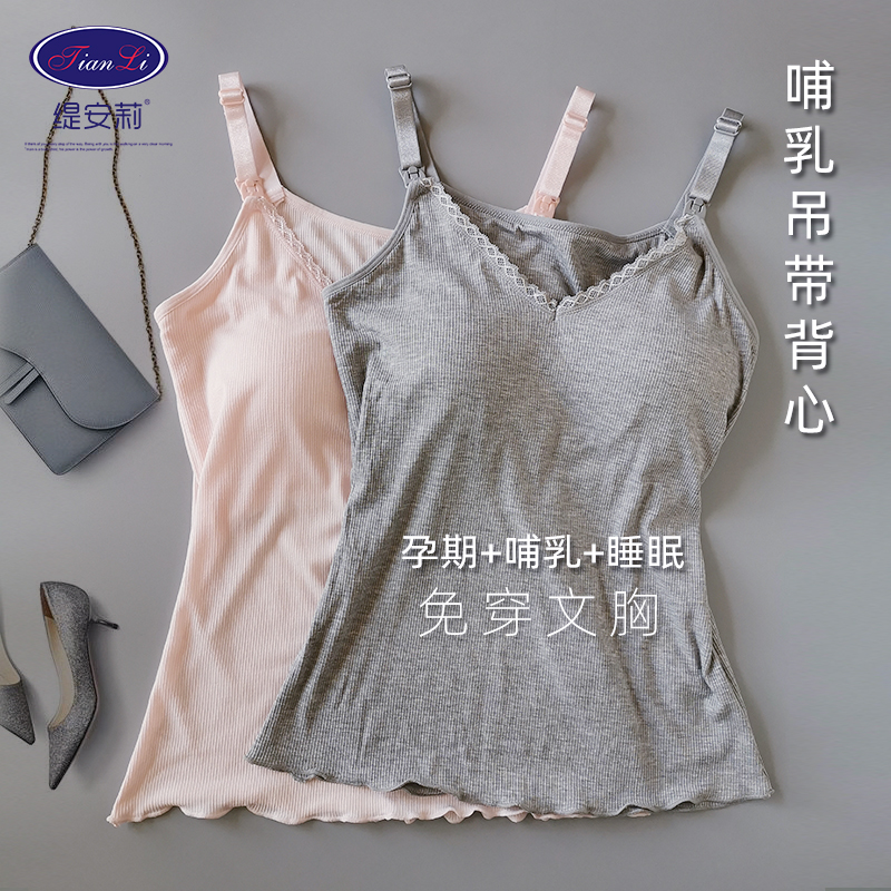 哺乳背心免穿文胸孕期吊带t内衣月子服纯棉夏季 产后外出哺乳 薄款