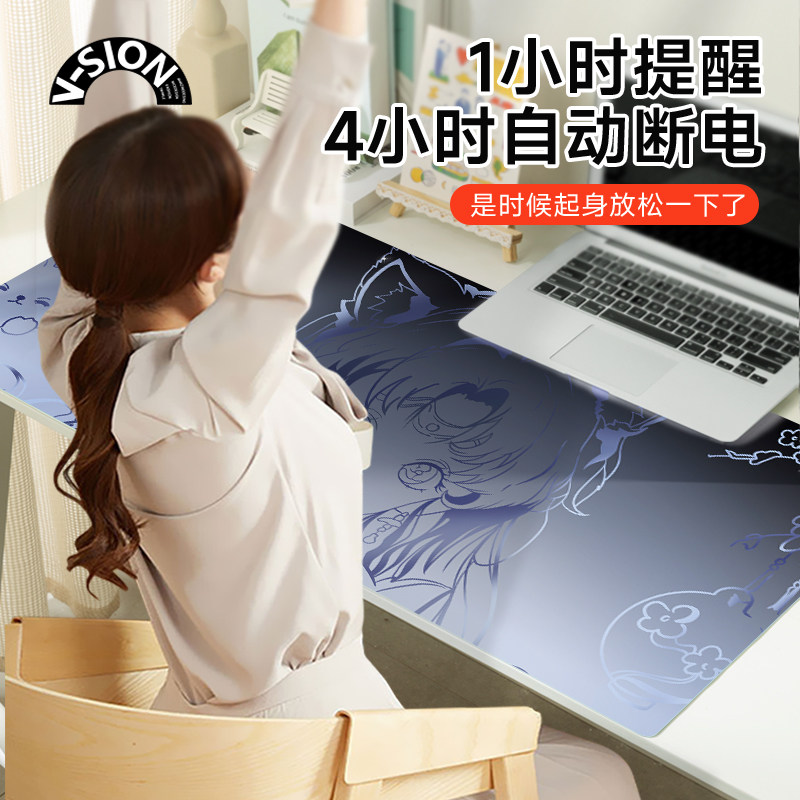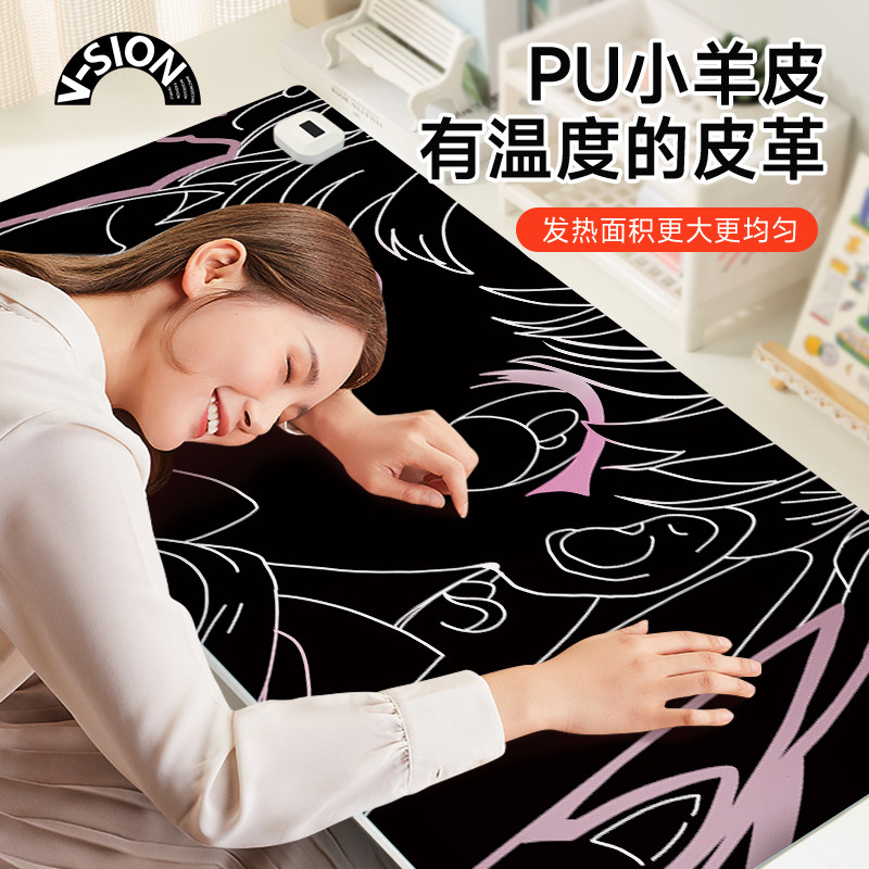 渐变2024新款 卡通海豚个性 加热鼠标垫超大发热暖桌垫办公室垫子桌面电脑键盘电热板暖手桌垫 SION