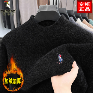 一体绒保暖纯色针织打底衫 啄木鸟半高领加绒加厚男士 毛衣2025冬季