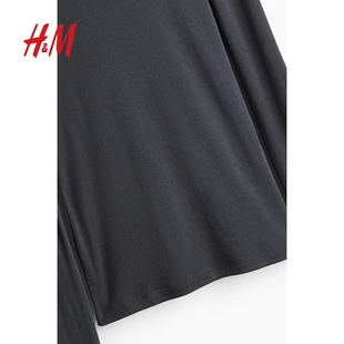 T恤长袖 女内搭修身 上衣 胖mm春秋镂空露锁骨半高领黑色打底衫 大码