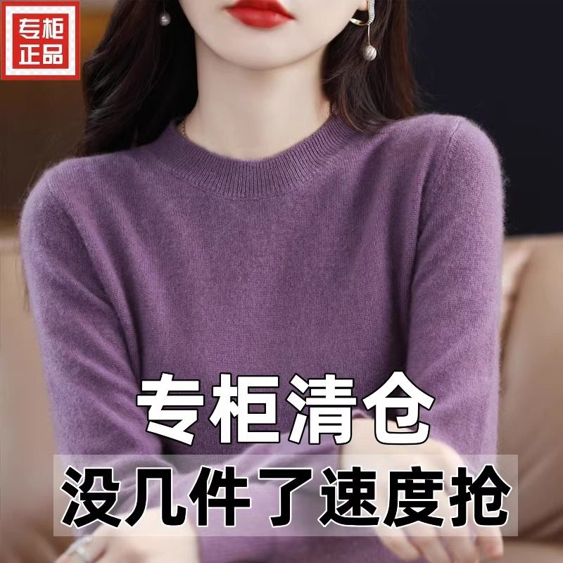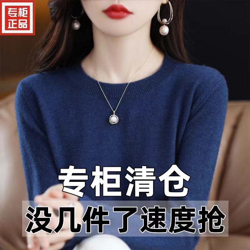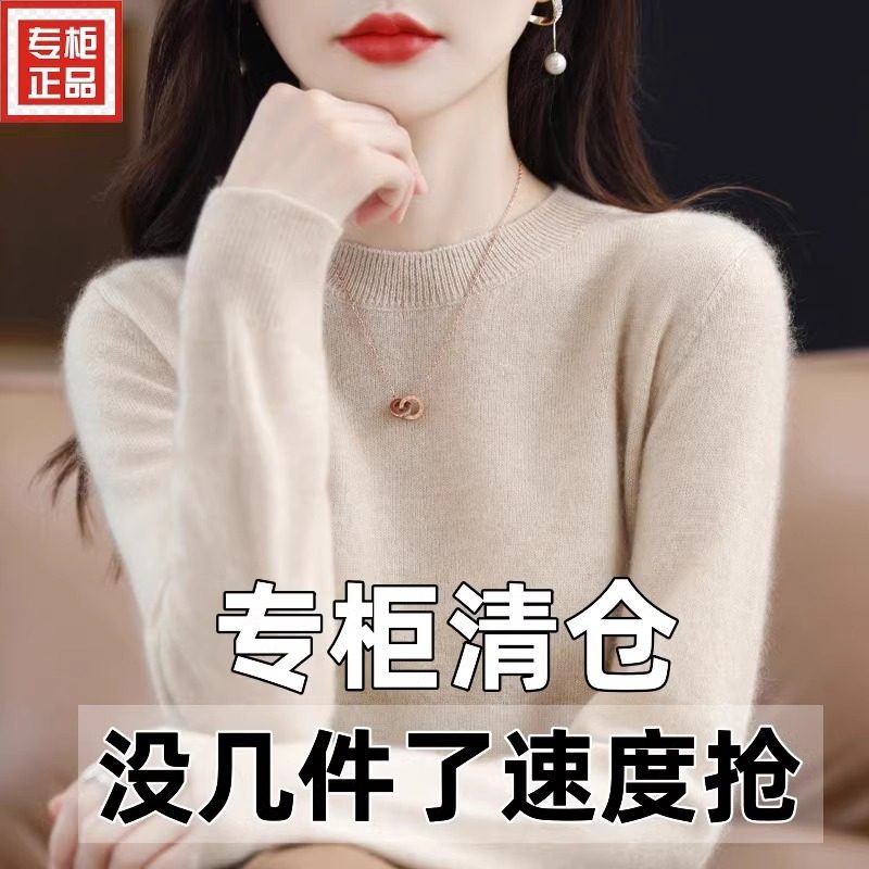 针织打底羊绒 女圆领毛衣宽松百搭大尺码 2024年春秋新款 纯色羊毛衫