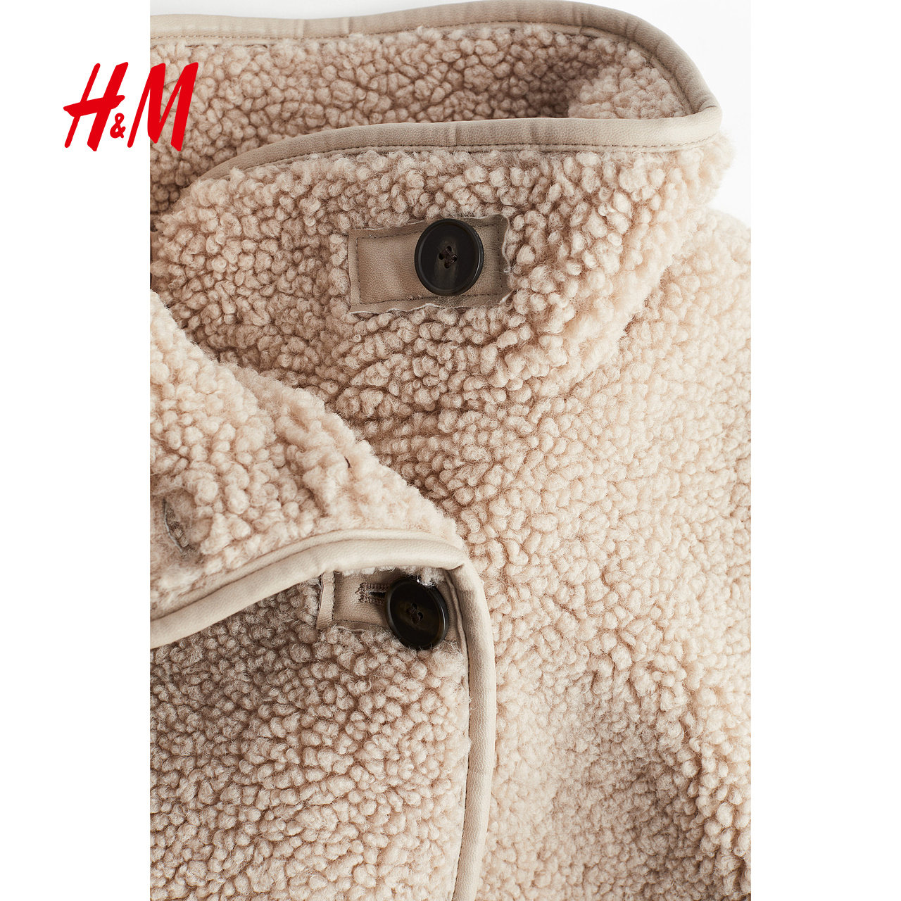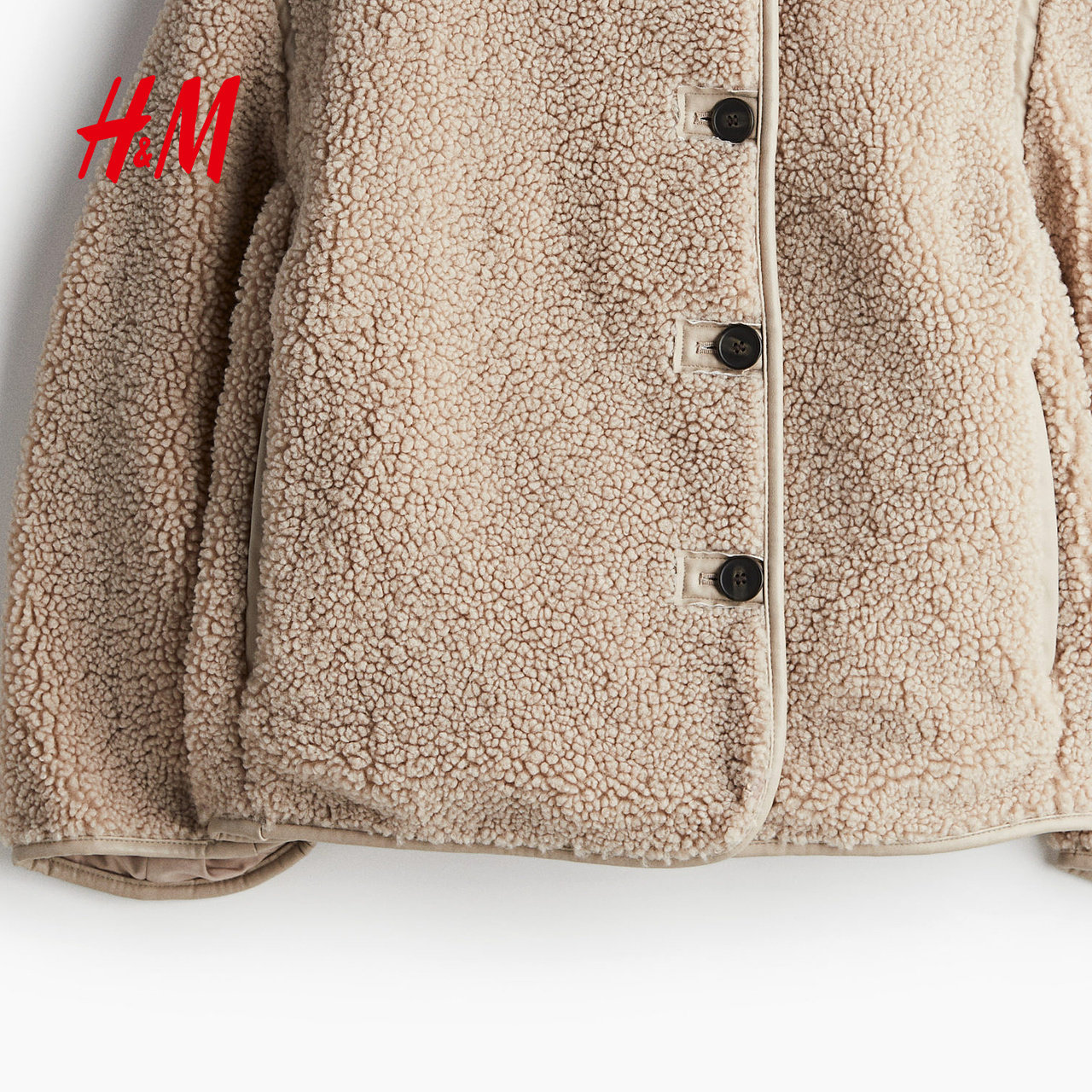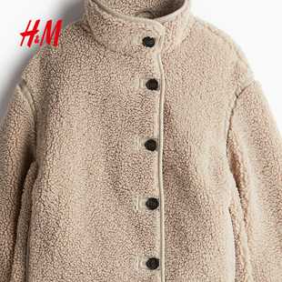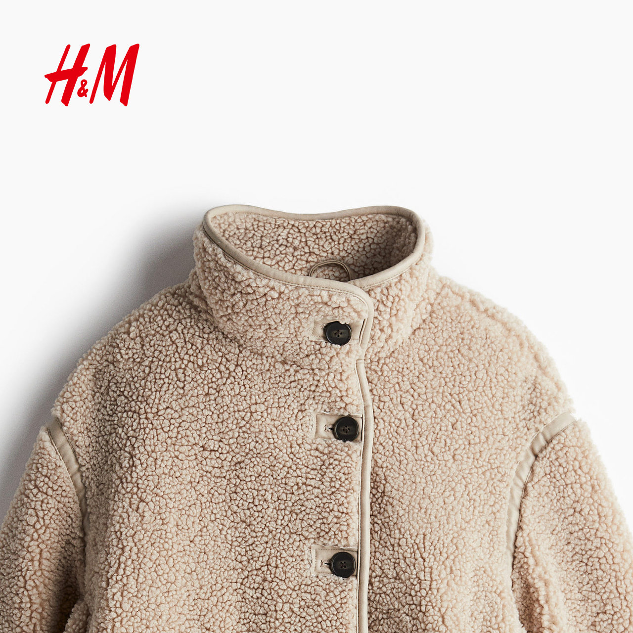立领绒感外套1249958 宽松保暖泰迪绒摇粒绒时尚 HM女装 短外套冬季