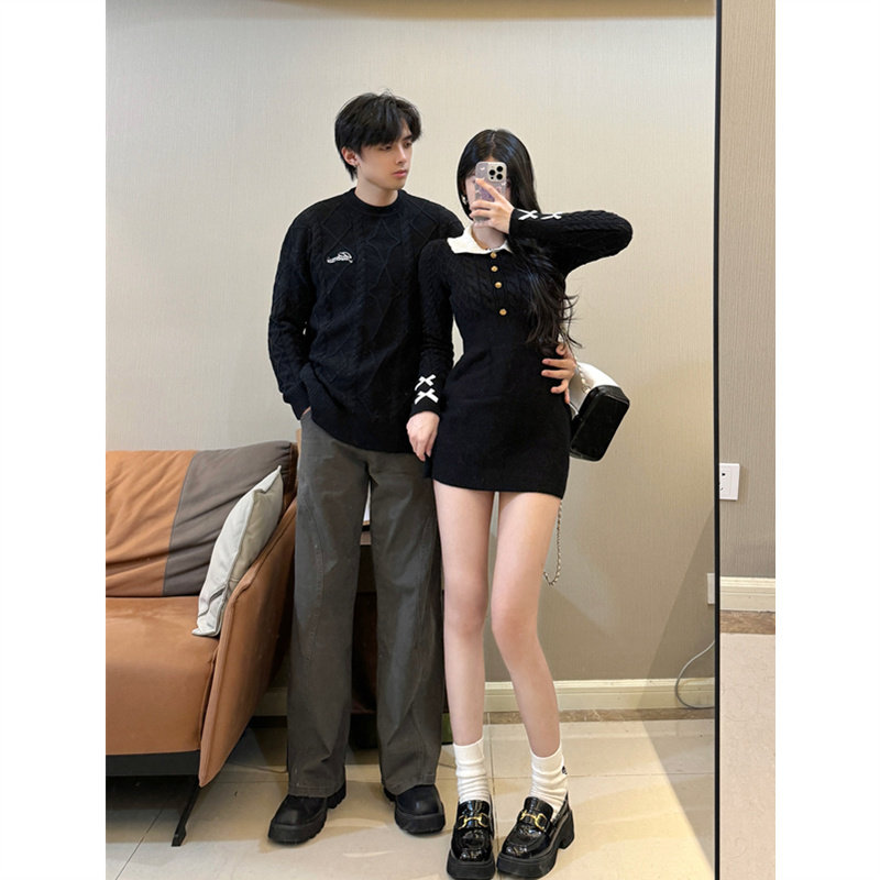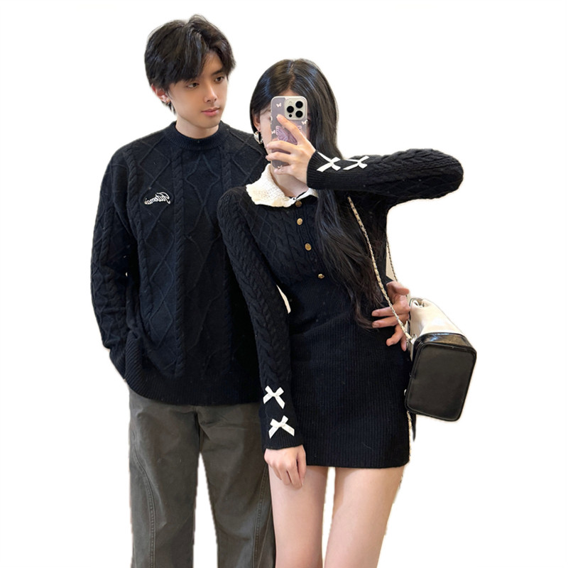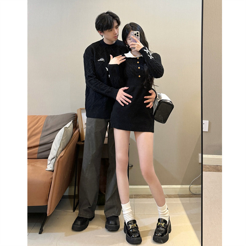 针织衫 情侣装 法式 ins超火毛衣连衣裙一男一女韩版 潮 秋冬2025新款