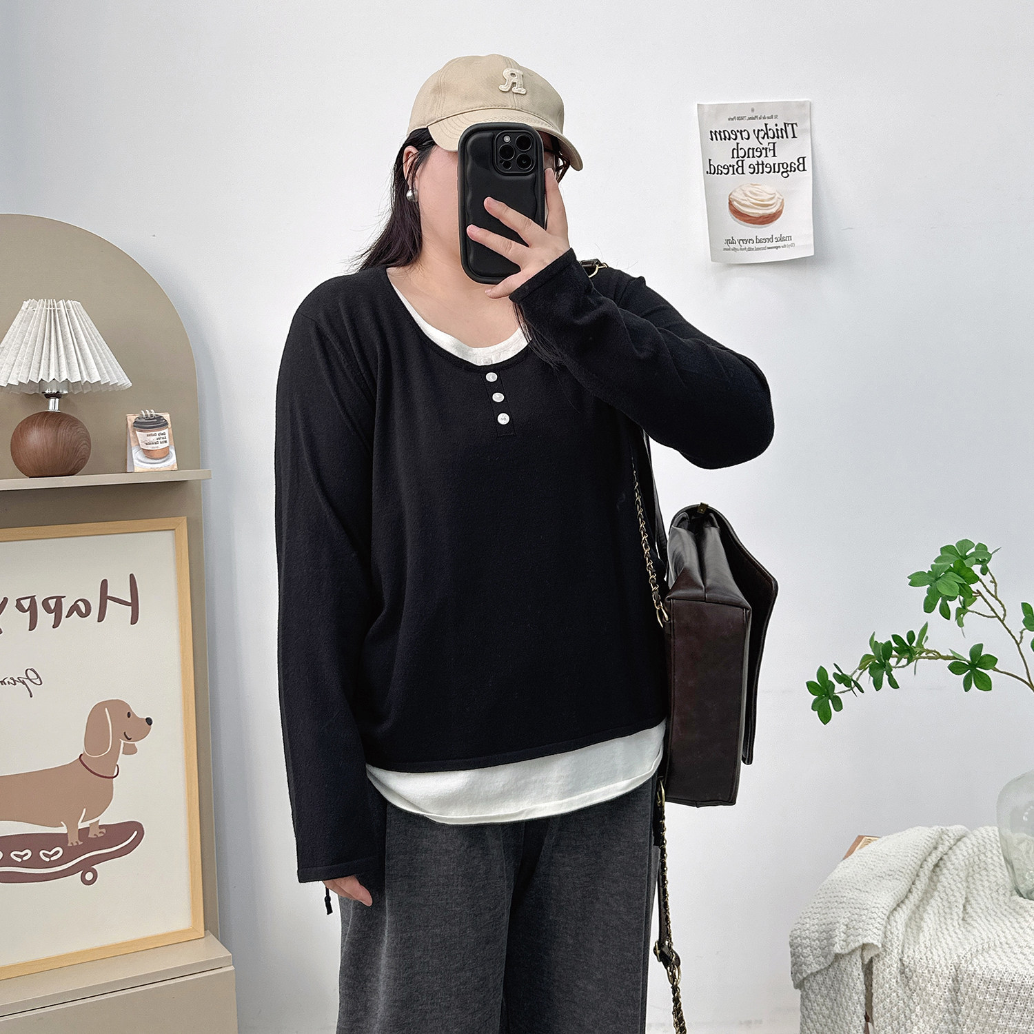 软糯弹力舒适百搭小衫 女装 内搭 木子理想大码 胖mm秋冬堆堆领打底衫