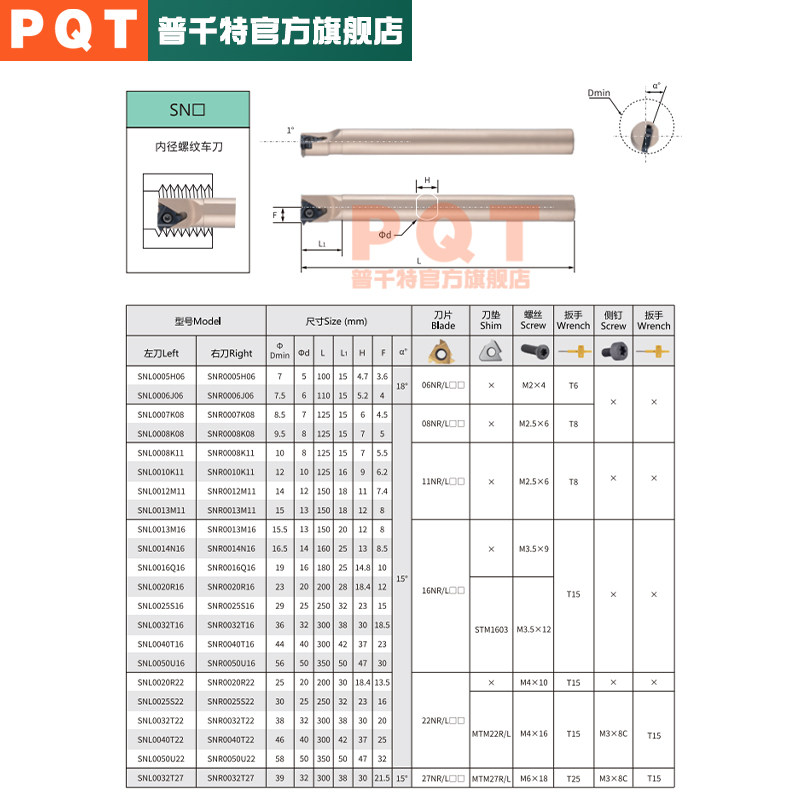 25S22 0016Q16 PQT数控内螺纹反刀杆防震弹簧钢挑牙刀 SNL0010K11