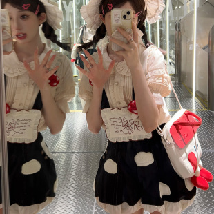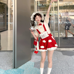 包子猪Lolita 基佬装 现货蘑菇花苞背带短裤 可爱红色洛丽塔夏秋季