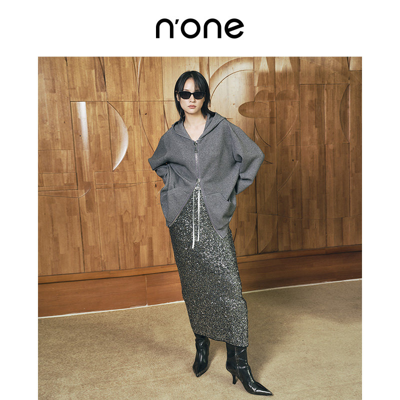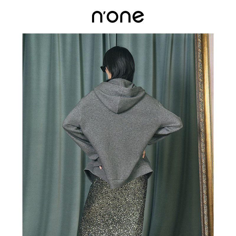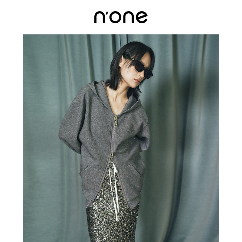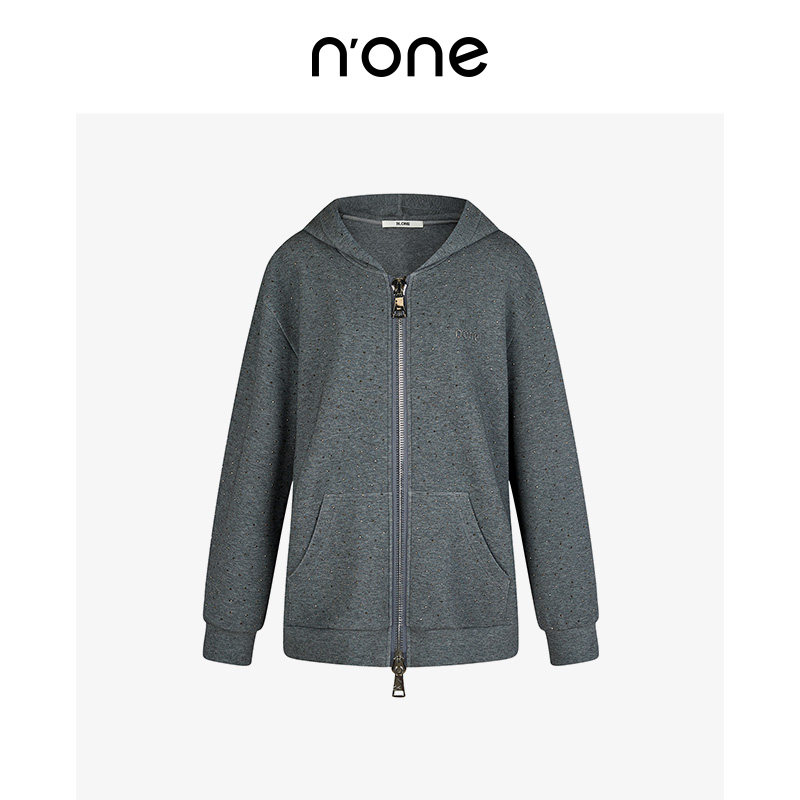 none 宽松慵懒感全身烫钻双开拉链外套 松弛感连帽卫衣女2025新款