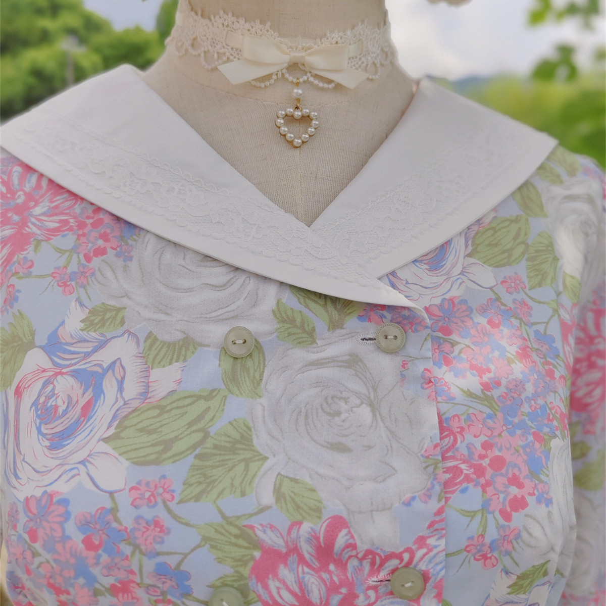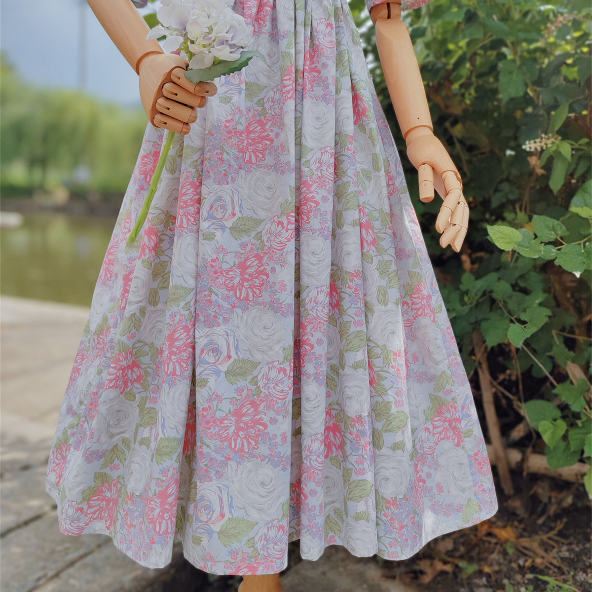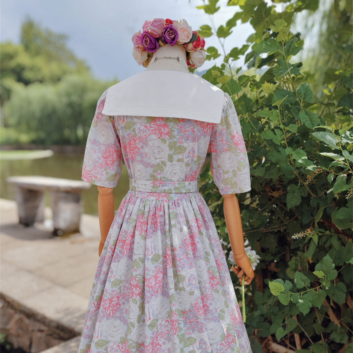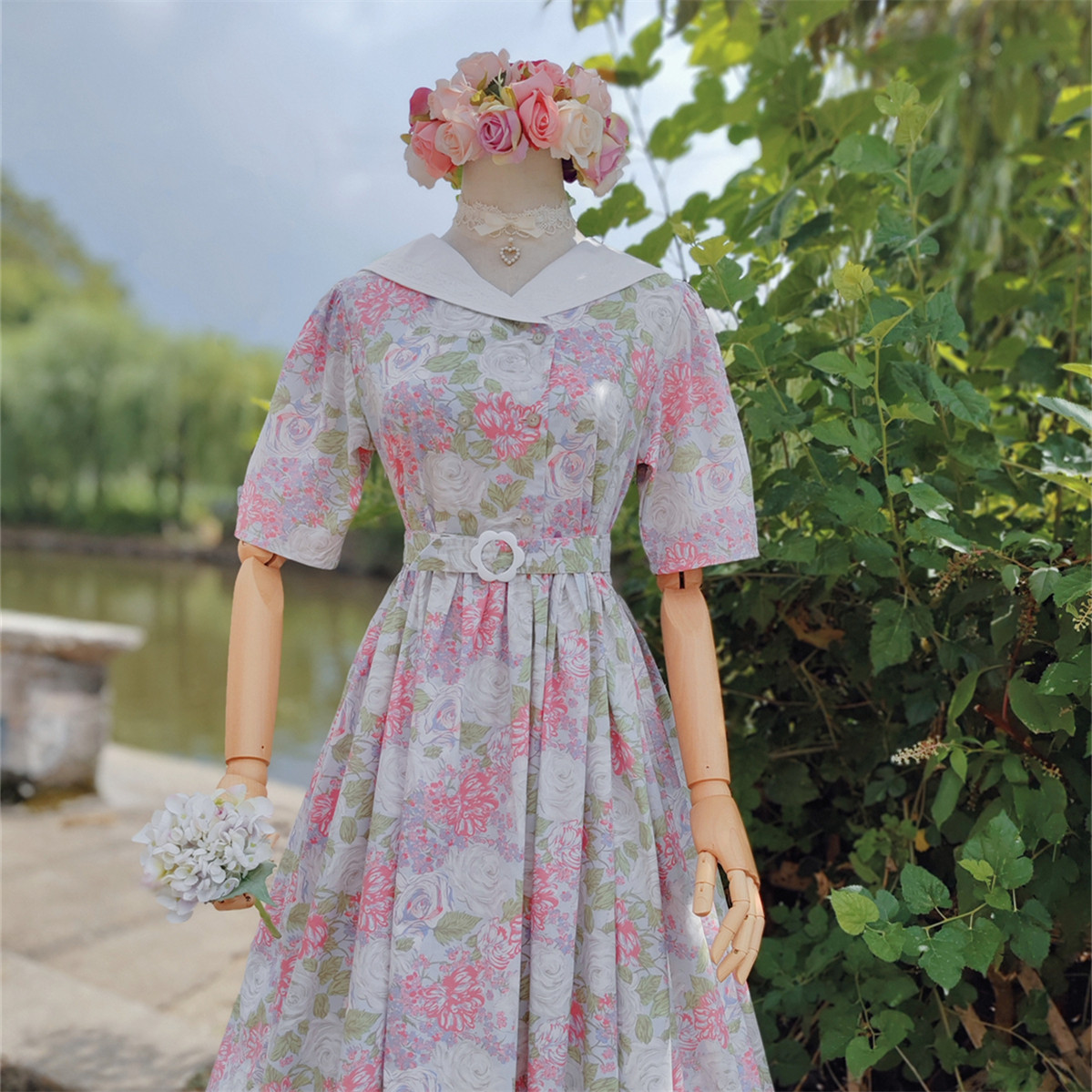 vintage甜美花朵腰带高腰连衣裙 ashley 兔子大人|手作服 Laura