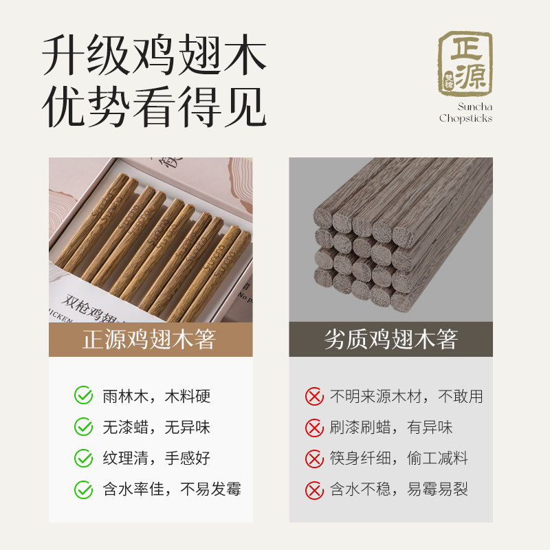 好管家鸡翅木筷子家用高档抗菌防霉家庭用长筷子2025新款 无漆无蜡