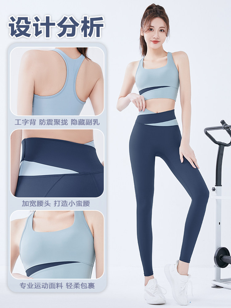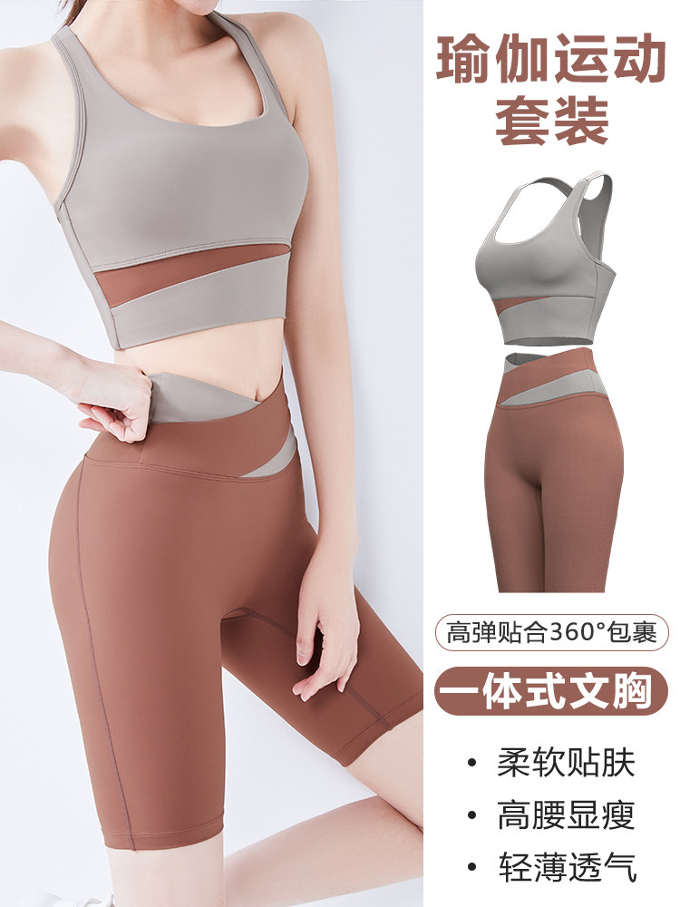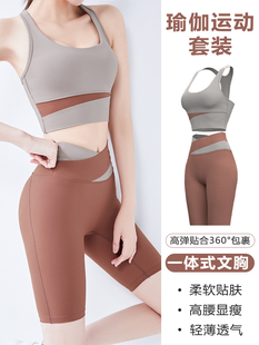 健身瑜伽服运动内衣套装 女夏专业背心防震聚拢文胸高腰提臀五分裤