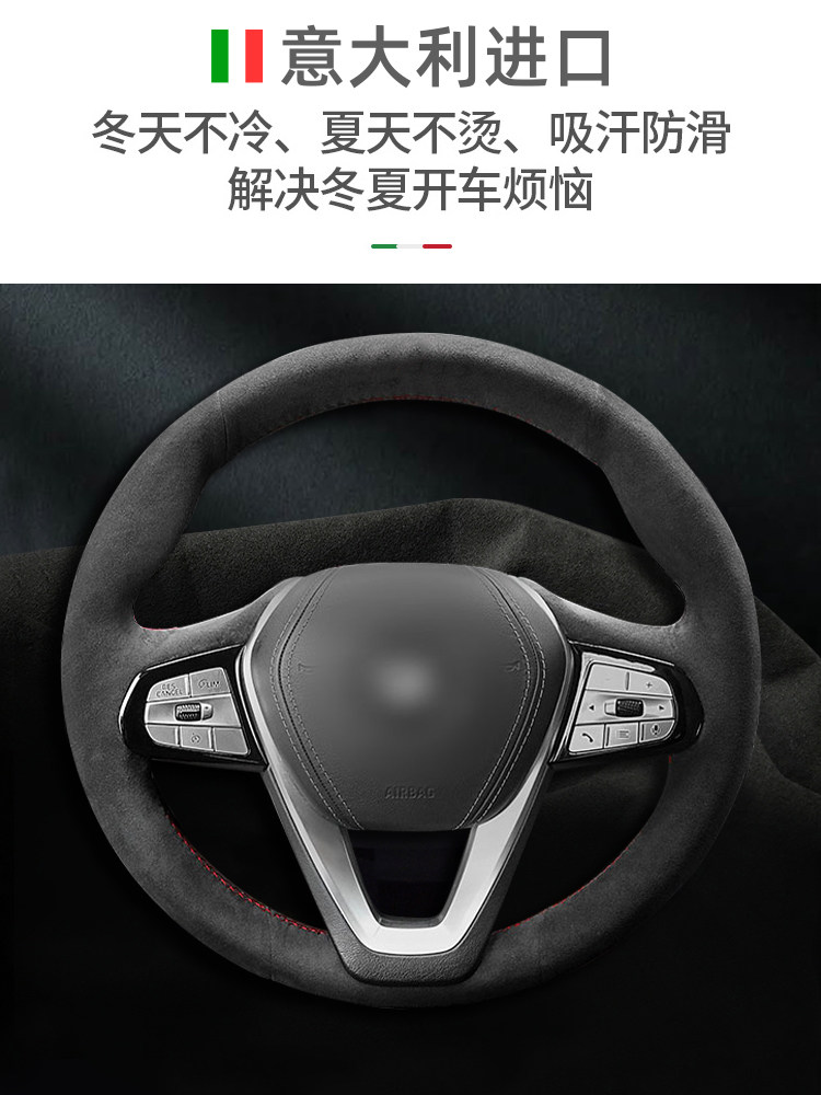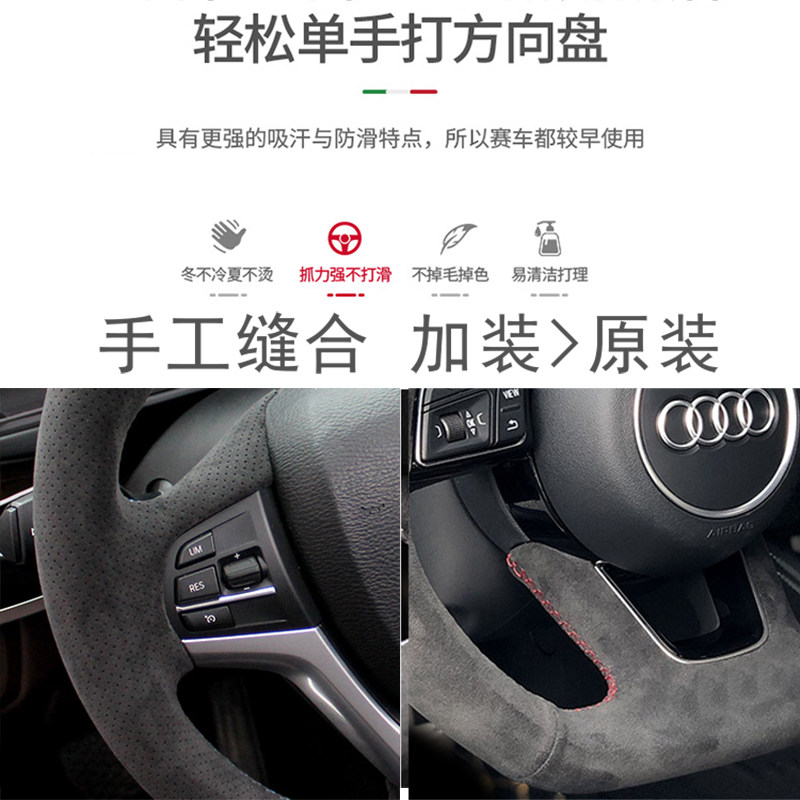 A6L Q7A7手缝翻毛真皮碳纤 Q5L 奥迪方向盘套适用于A4L
