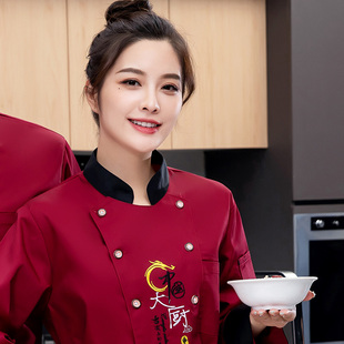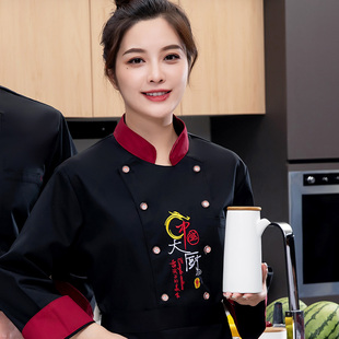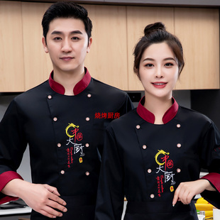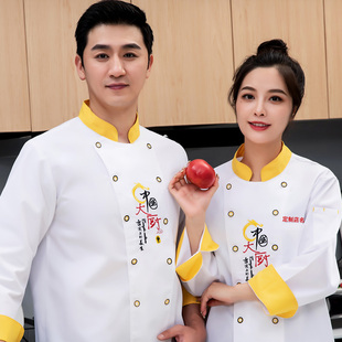 中式 男女工作服烧烤饭店餐厅学校食堂厨房印绣logo 秋冬厨师服长袖