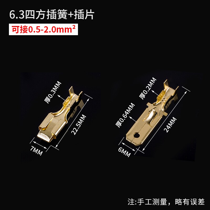 6.3mm四方插簧插片公母对插端子接插件汽车接线快速连接器线端子