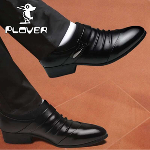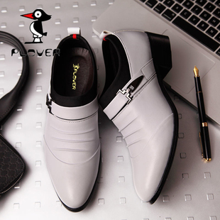 男士 内增高尖头中跟爸爸鞋 春秋韩版 鞋 真皮白色商务正装 Plover皮鞋
