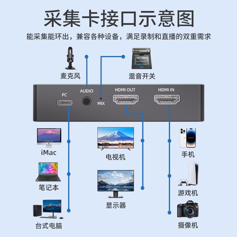 数魅VC10 4K高清hdmi视频采集卡直播专用相机switch手机PS5采集器