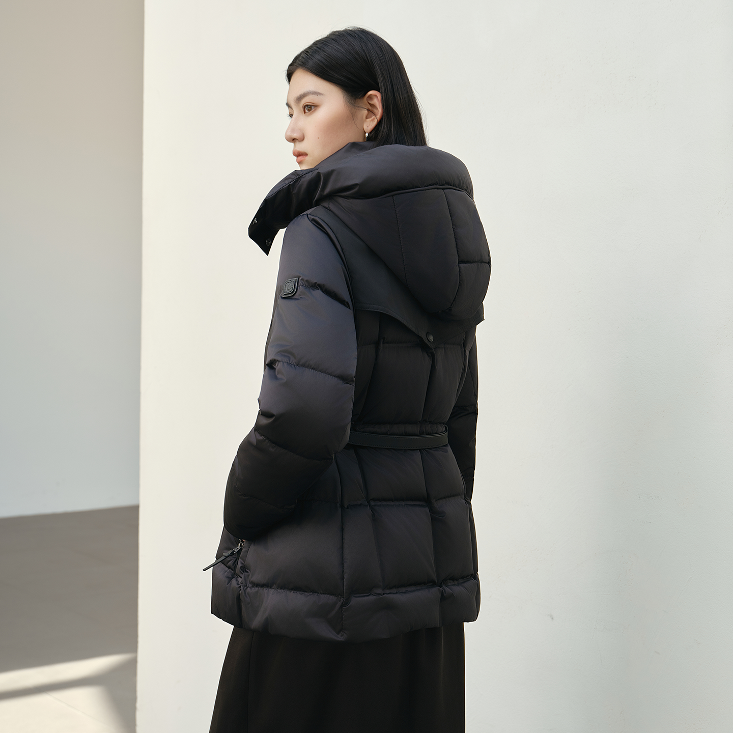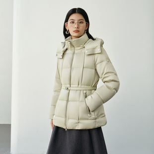 正品 气质连帽收腰鹅绒服爆款 羽绒服女士冬防风立领时尚 艾莱依短款
