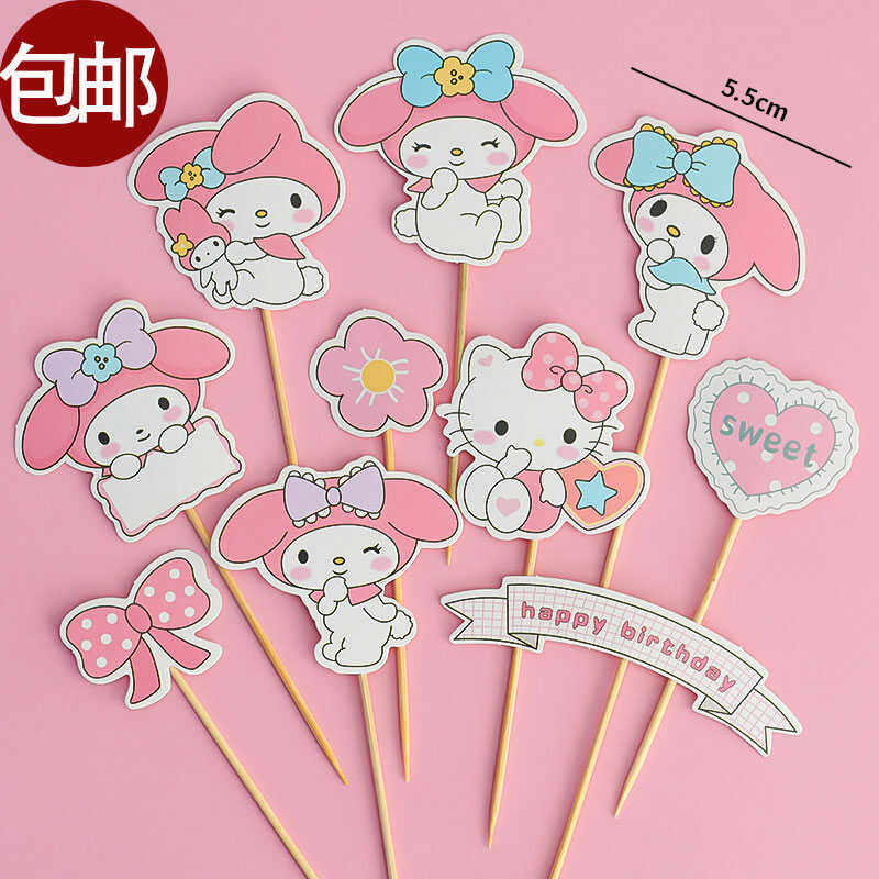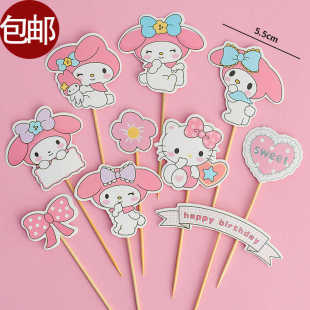 网红ins风美乐蒂KT猫蛋糕装 饰摆件女孩生日凯蒂猫蝴蝶结烘焙插件