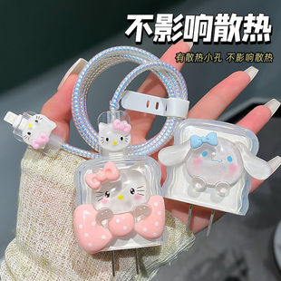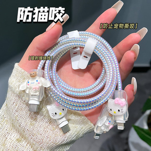 适用20W苹果16数据线保护套卡通KT猫iphone15pro充电线保护壳缠绕器14max13快充防折断防猫咬