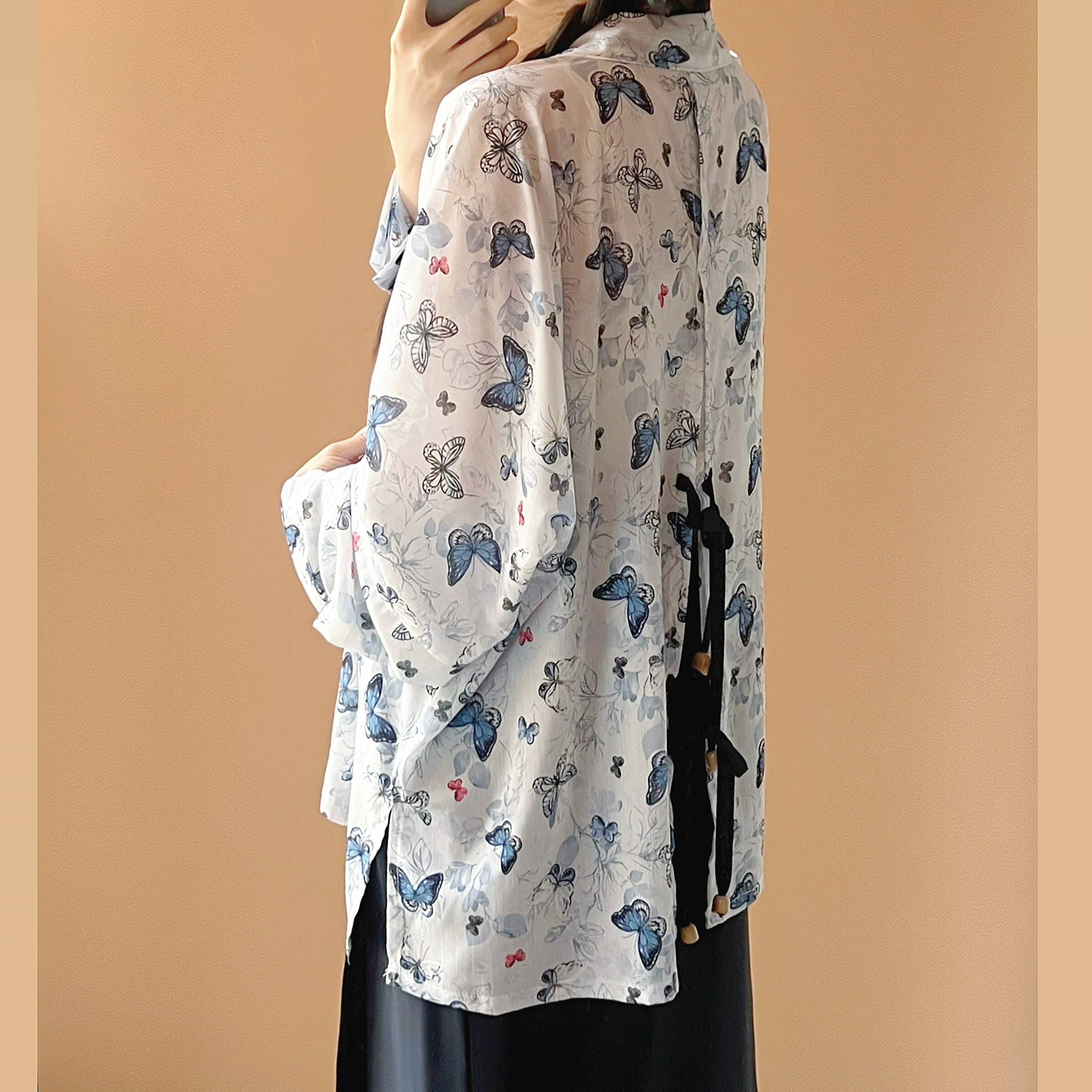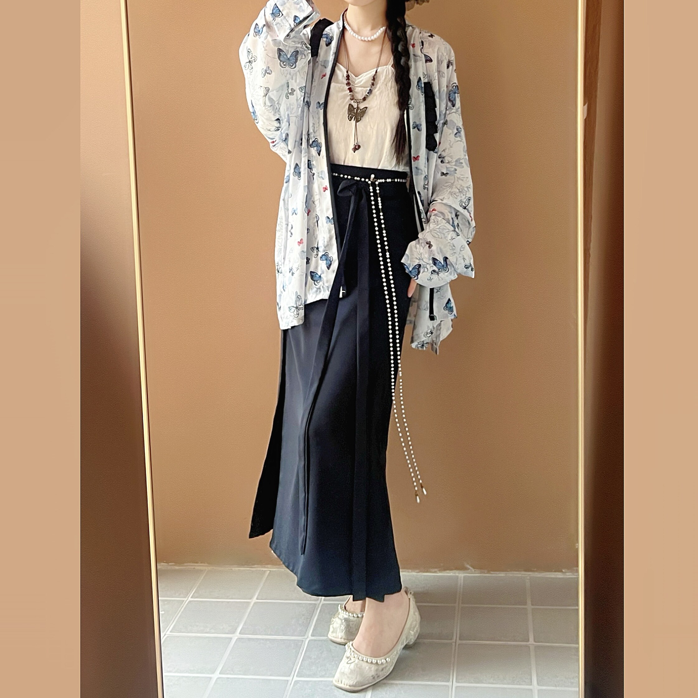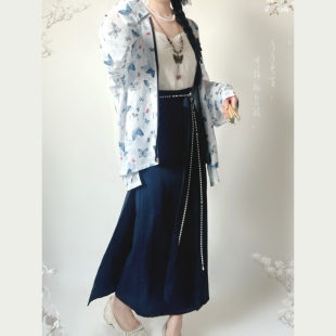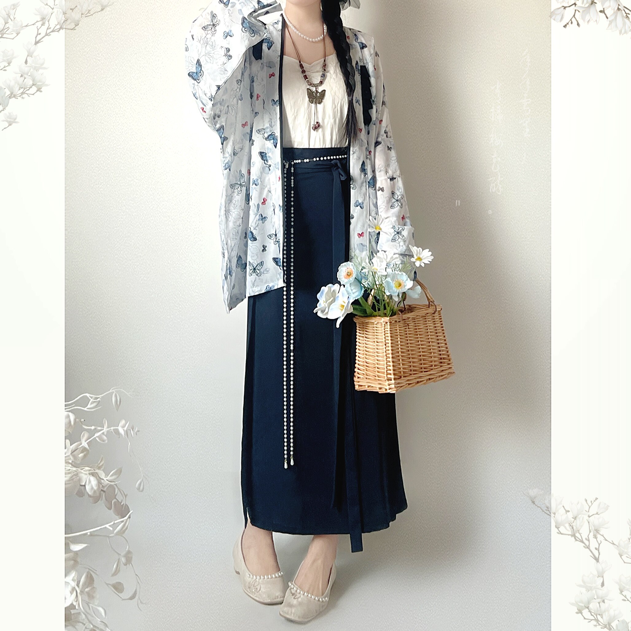 新款 2025夏季 宋制旋裙:蝶恋改良开背印染汉服套 蝶恋 舜华集
