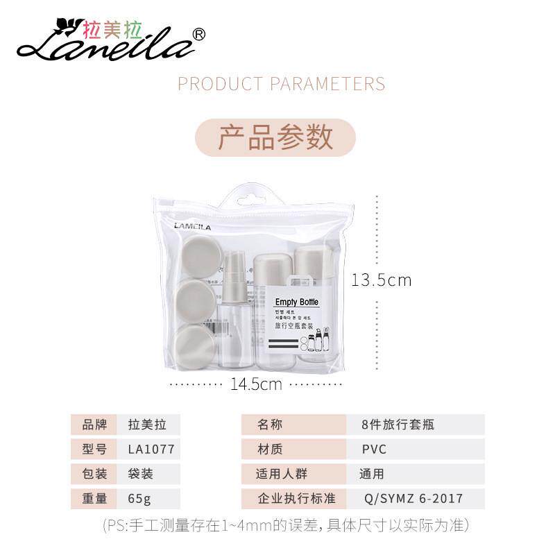 瓶面霜盒附收纳袋LA1077 便携旅行喷瓶分装 拉美拉化妆瓶套装 8件套