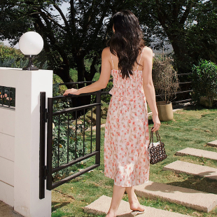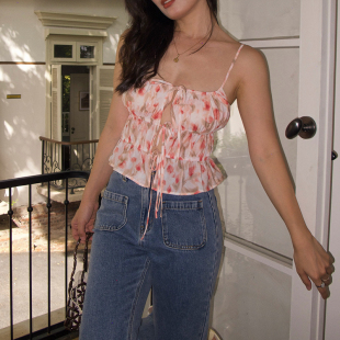碎花吊带上衣 ooh 复古纯欲性感修身 法式 高腰绑带半身裙 itch痒痒