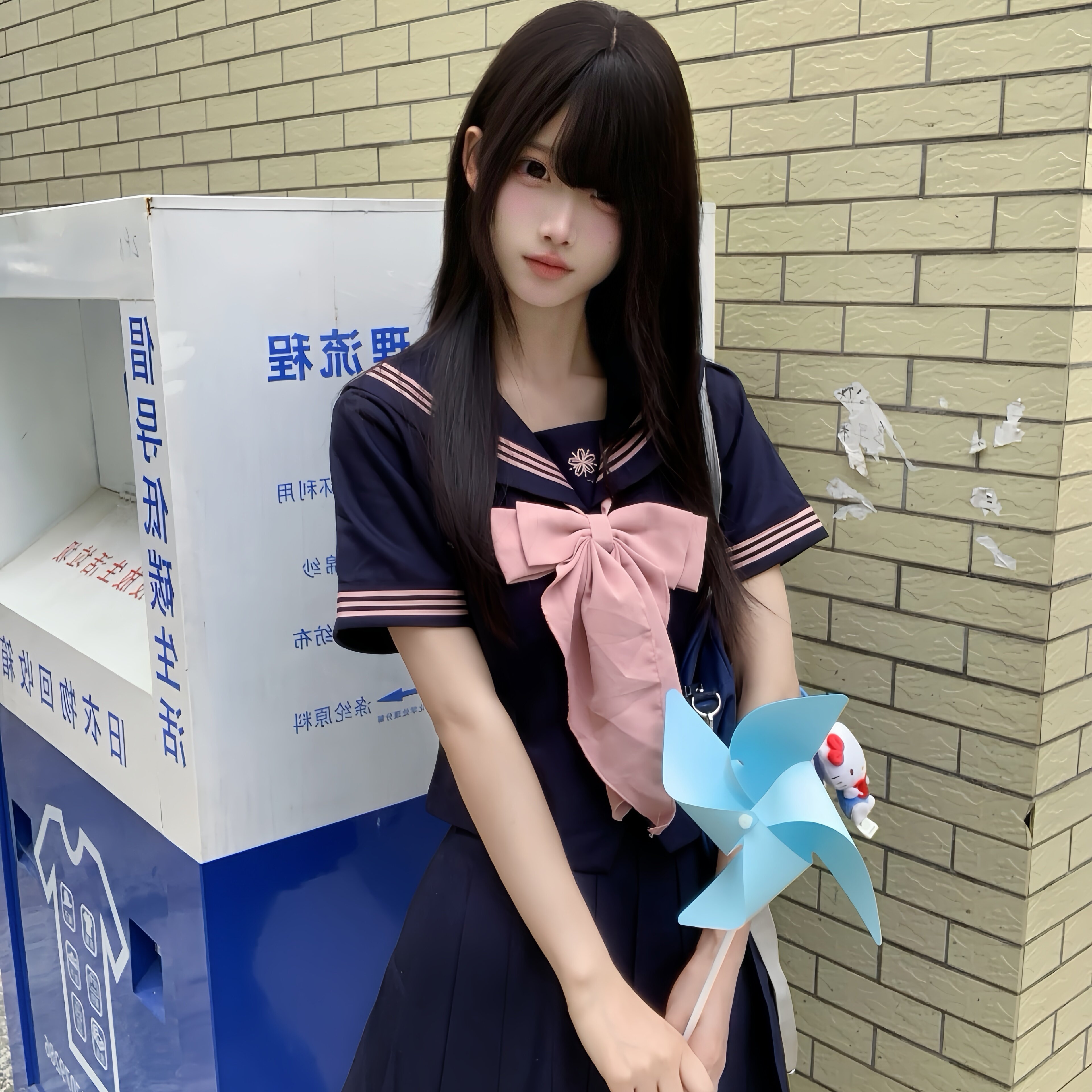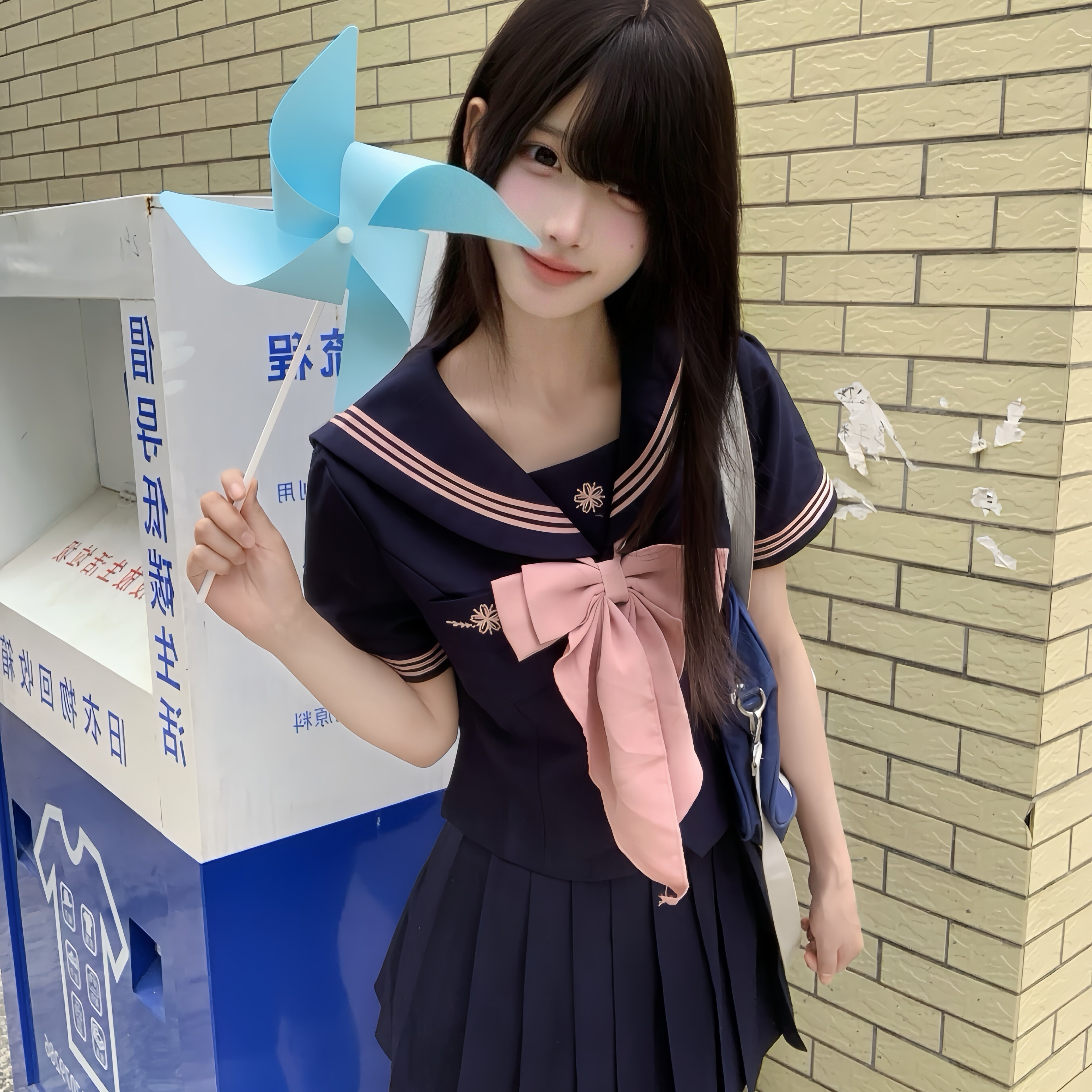 套装 原创水手服收腰JK制服日系学院风绀色短袖 樱澜中 巧所夏季