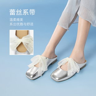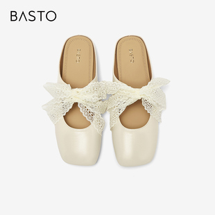 简约穆勒拖方头粗跟女拖鞋 时尚 F5192BH5 商场同款 百思图2025夏新款