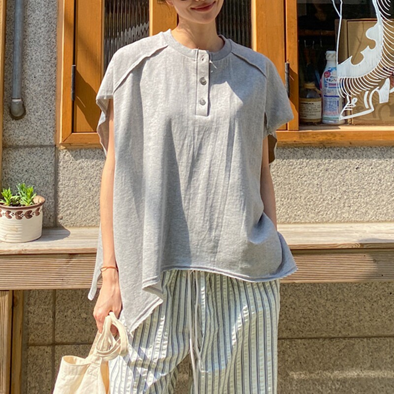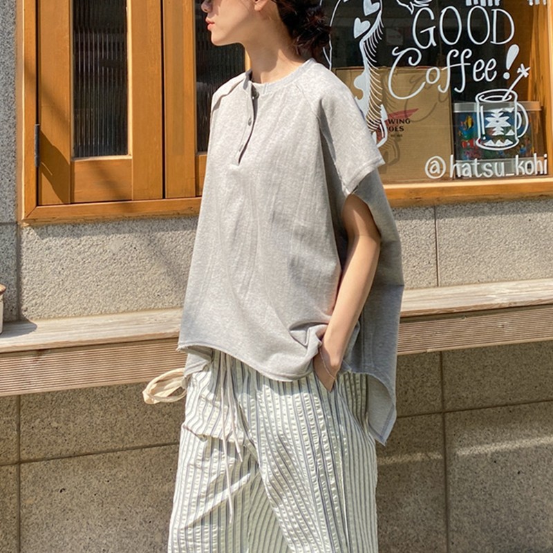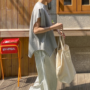 T331 设计感休闲宽松落肩圆领套头纯棉卫衣女T恤夏季 韩国女装 新品