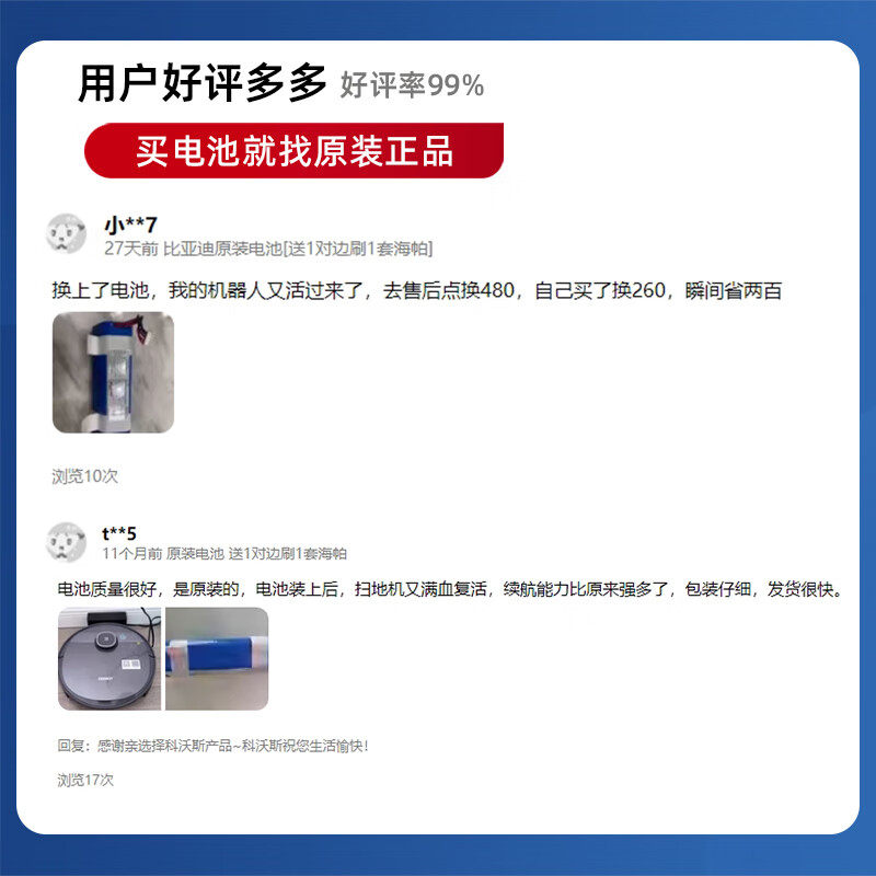 DX96原装 适用科沃斯T5MAX HERO扫地机器人电池DX65 配件 POWER